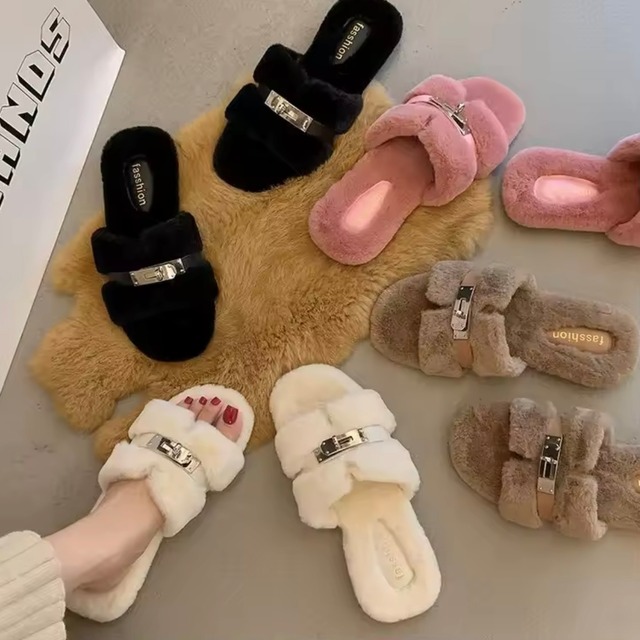 バックルファースリッパ 4色展開