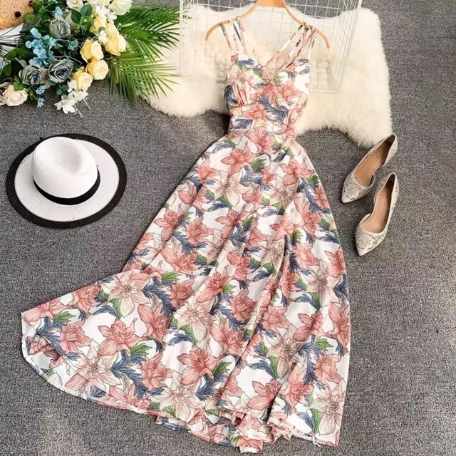 【即納】バッククロスフラワーワンピース
