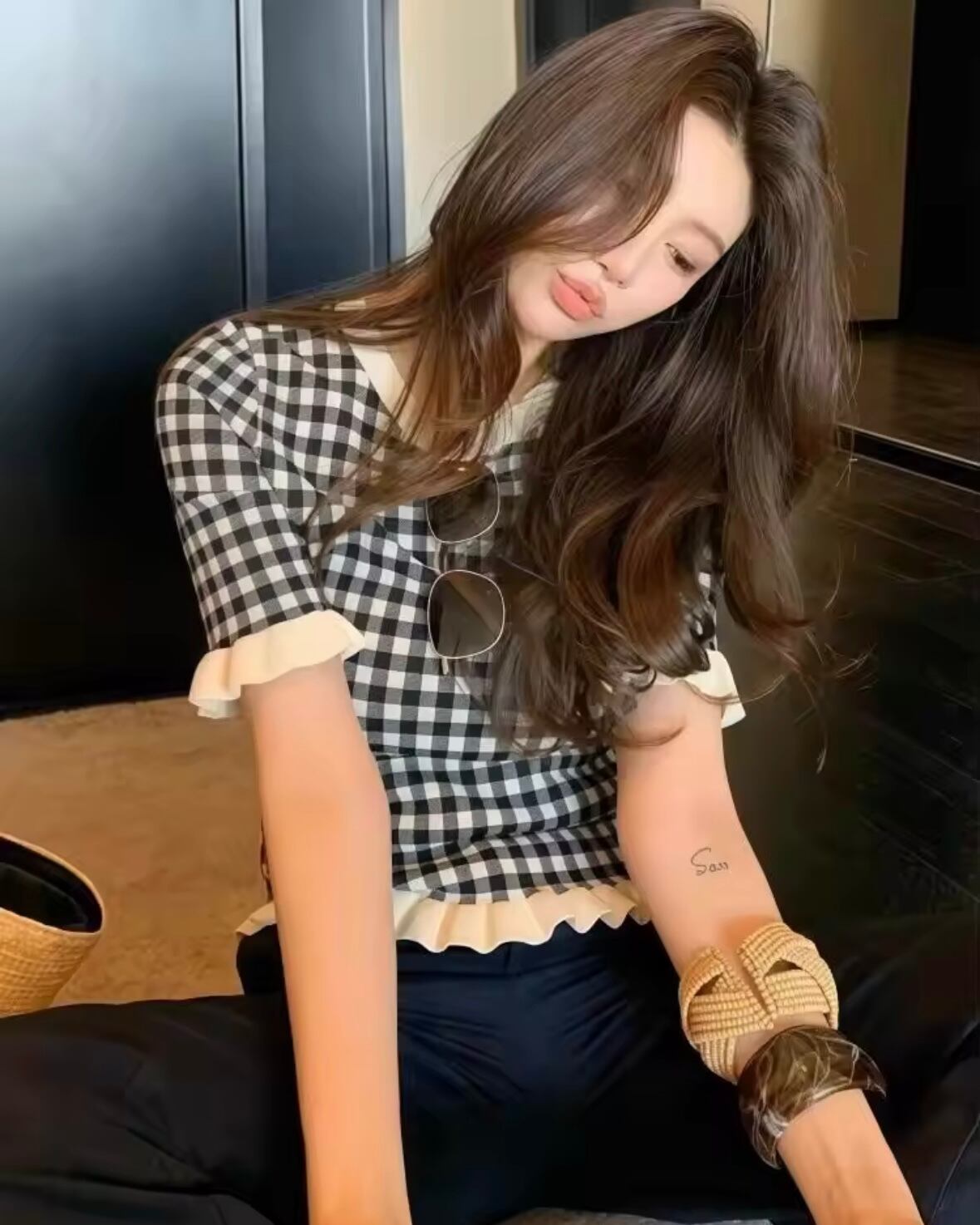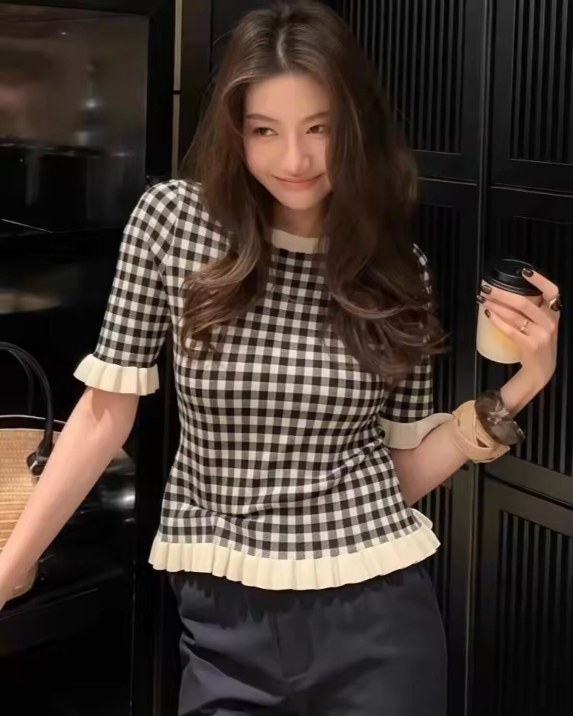 ギンガムチェックフリルサマーニット