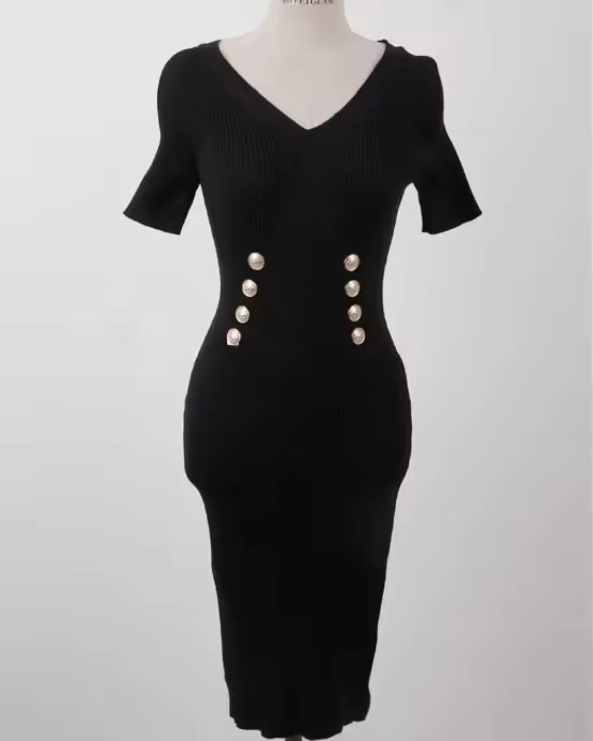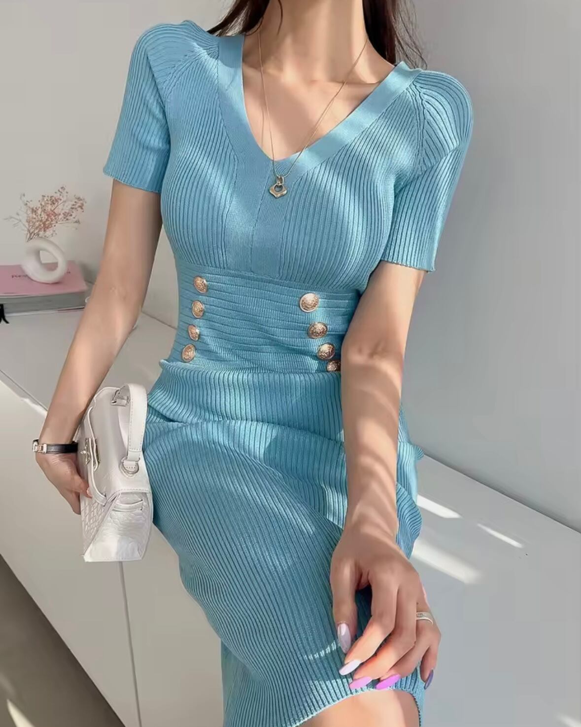 ウエストボタンタイトニットワンピース 4色展開