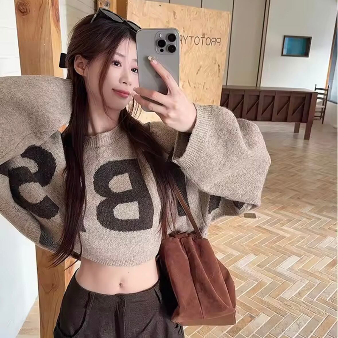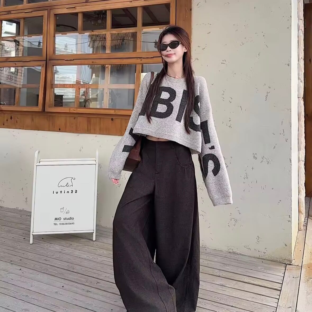 レターロングスリーブショートニット 3色展開