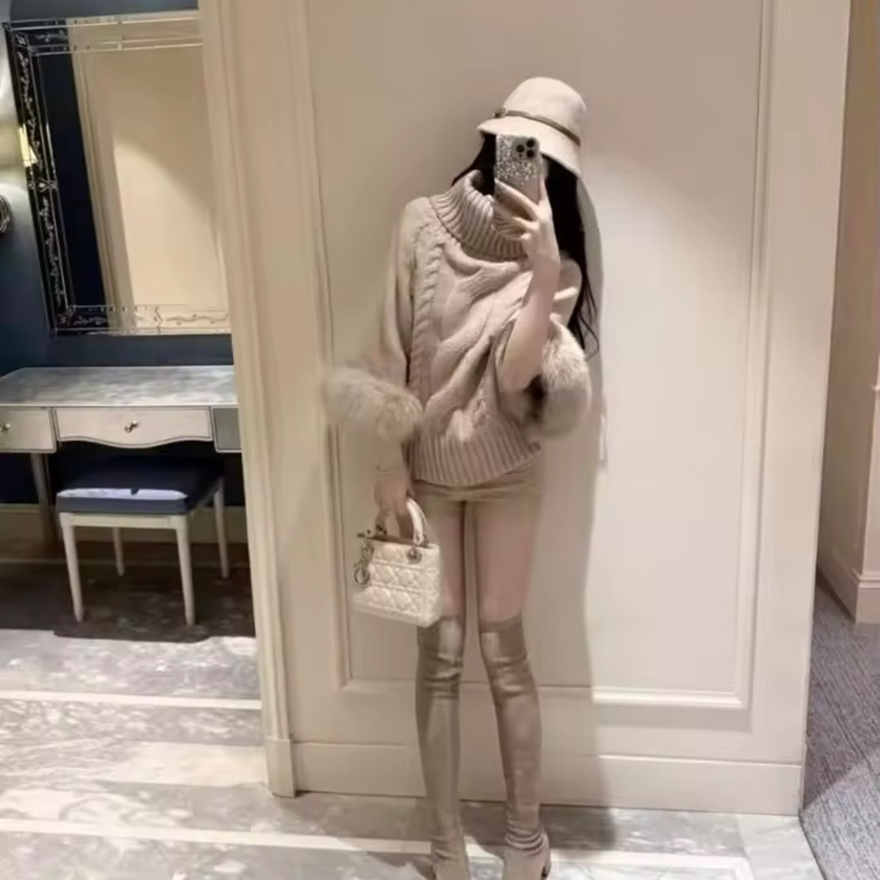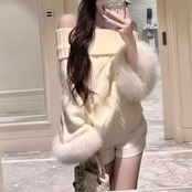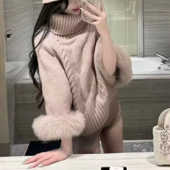 ハイネックケーブルファーポンチョ 3色展開