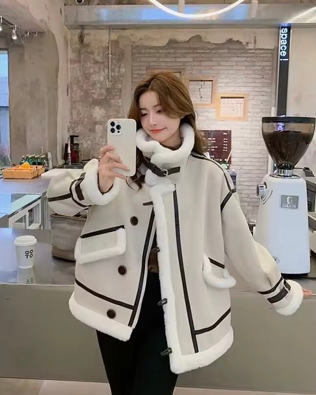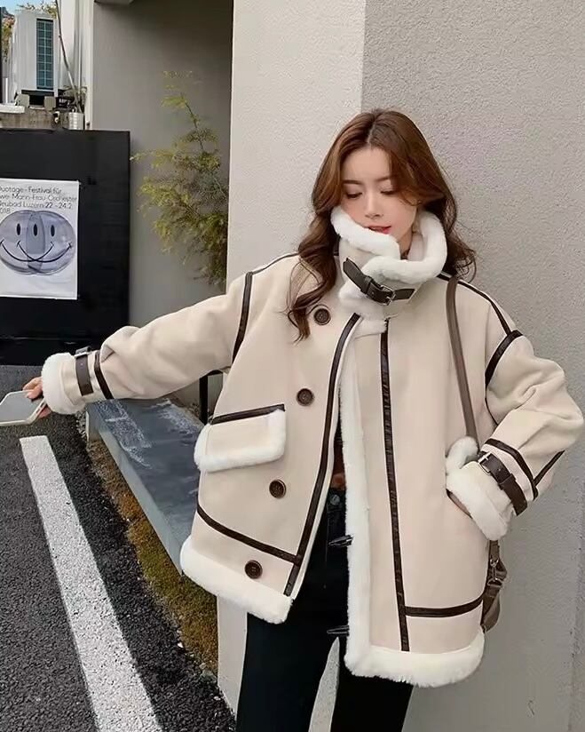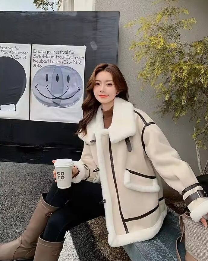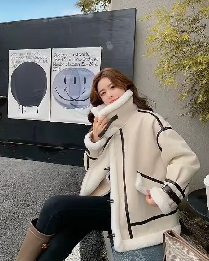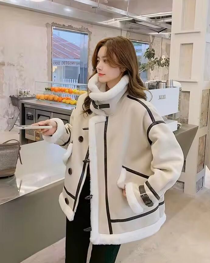レザーラインハイネックボアジャケット