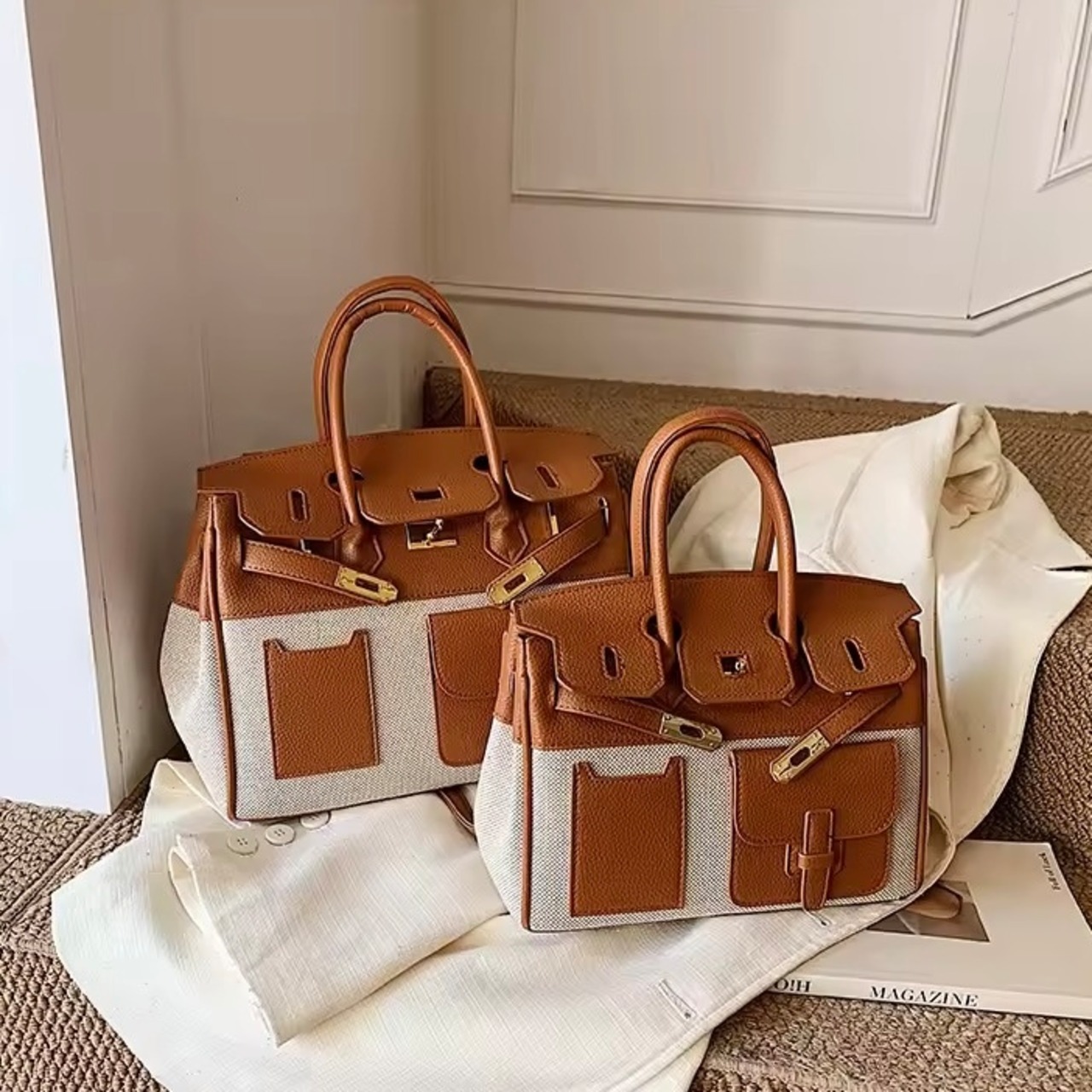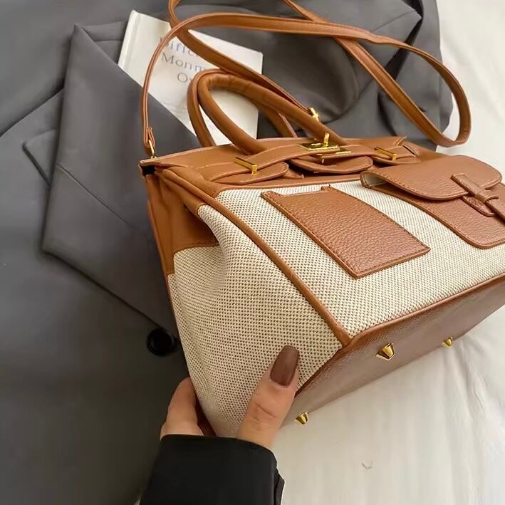 【2サイズ】レザーキャンバスバッグ 5色展開