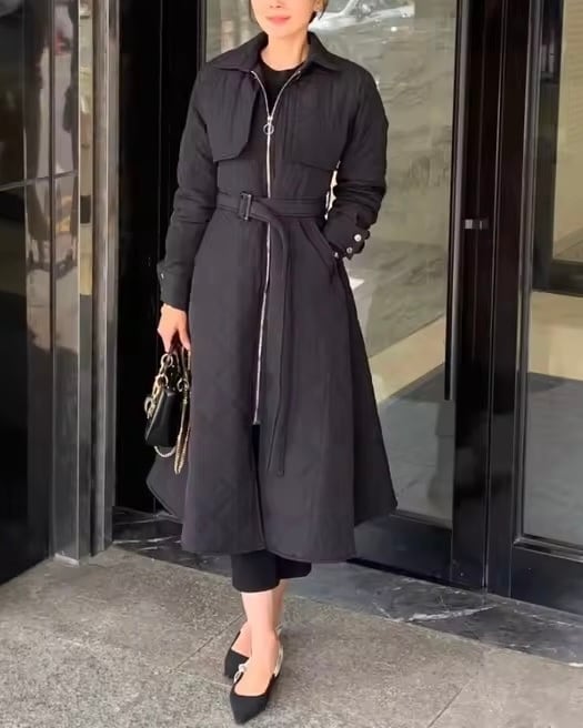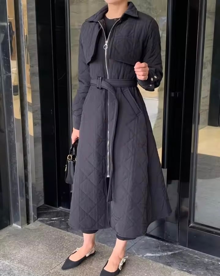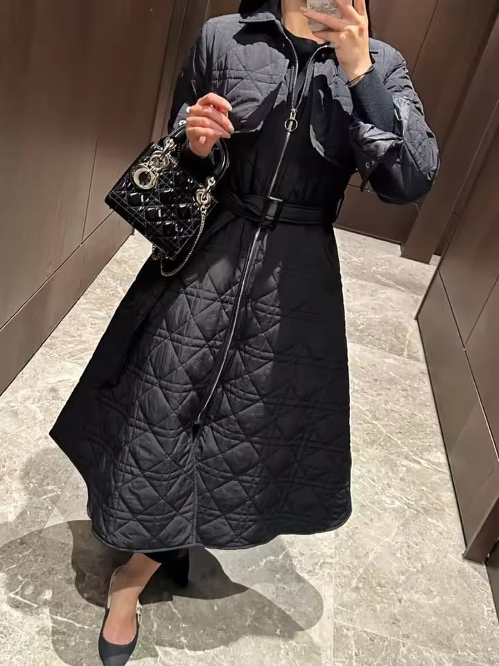 コットンキルティングロングコート