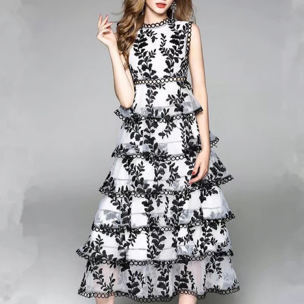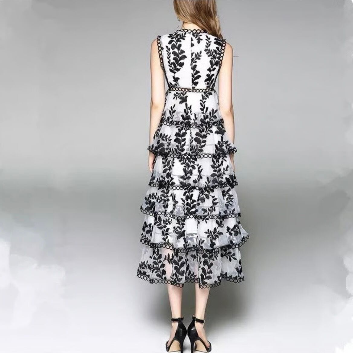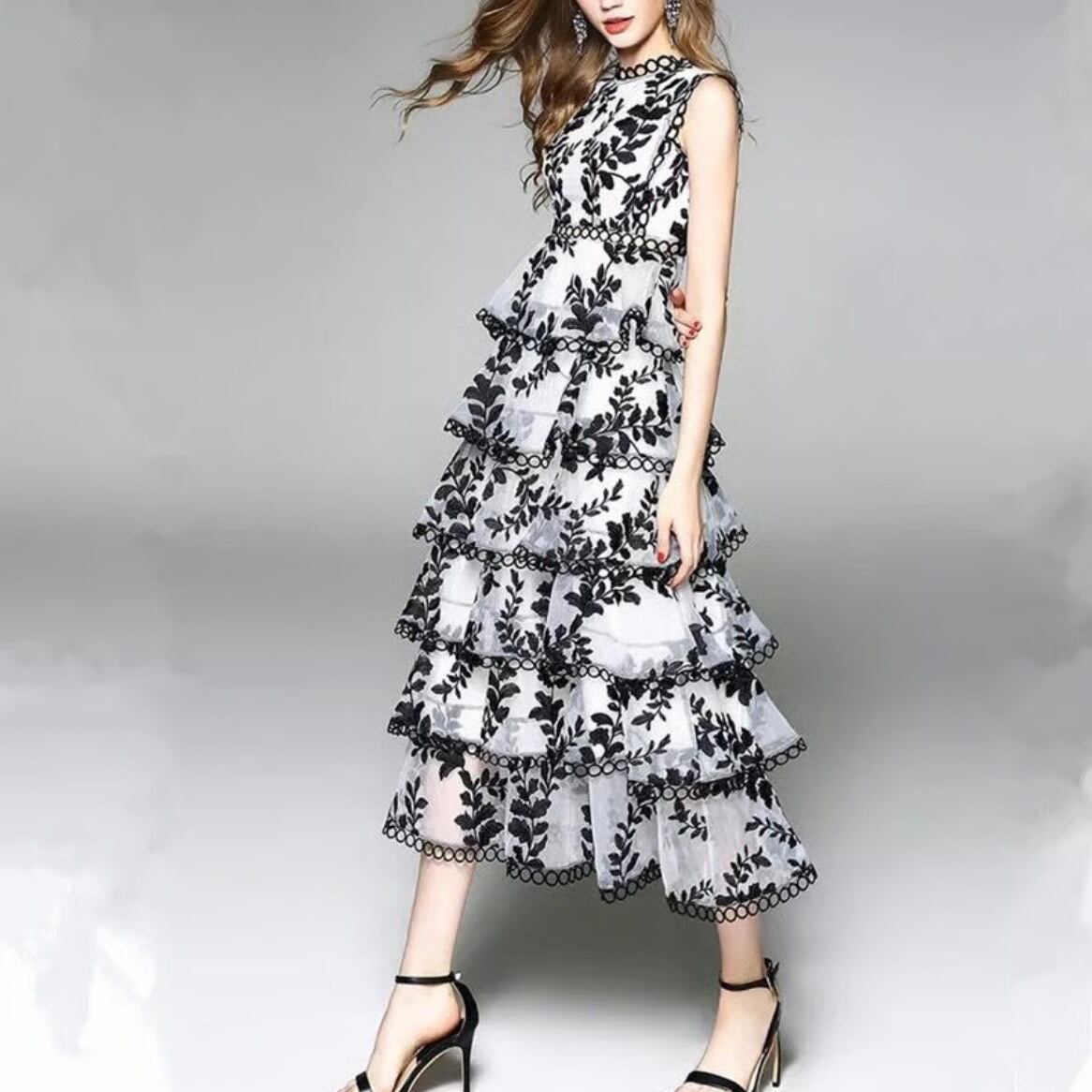 ブラックカットアウト フリルワンピース