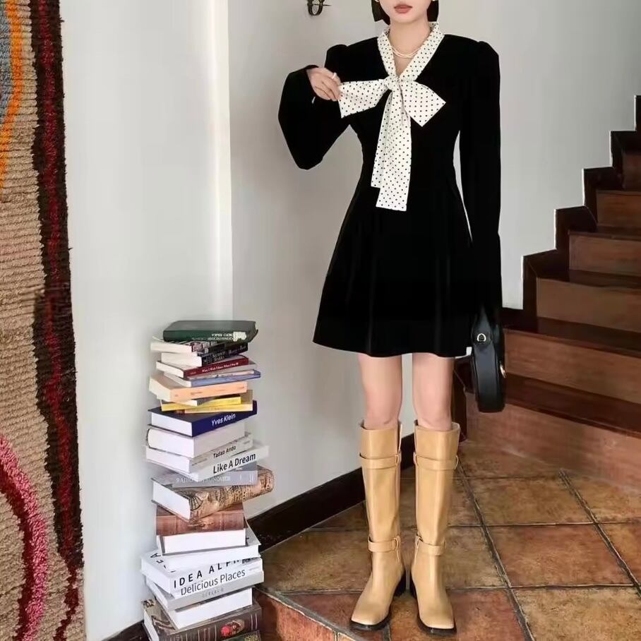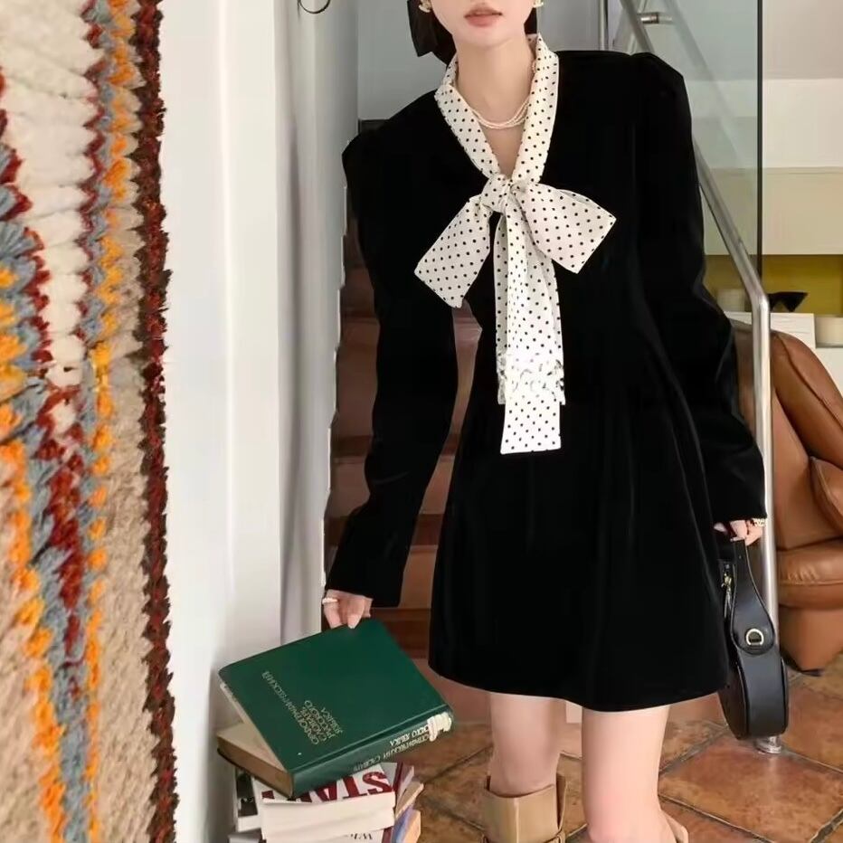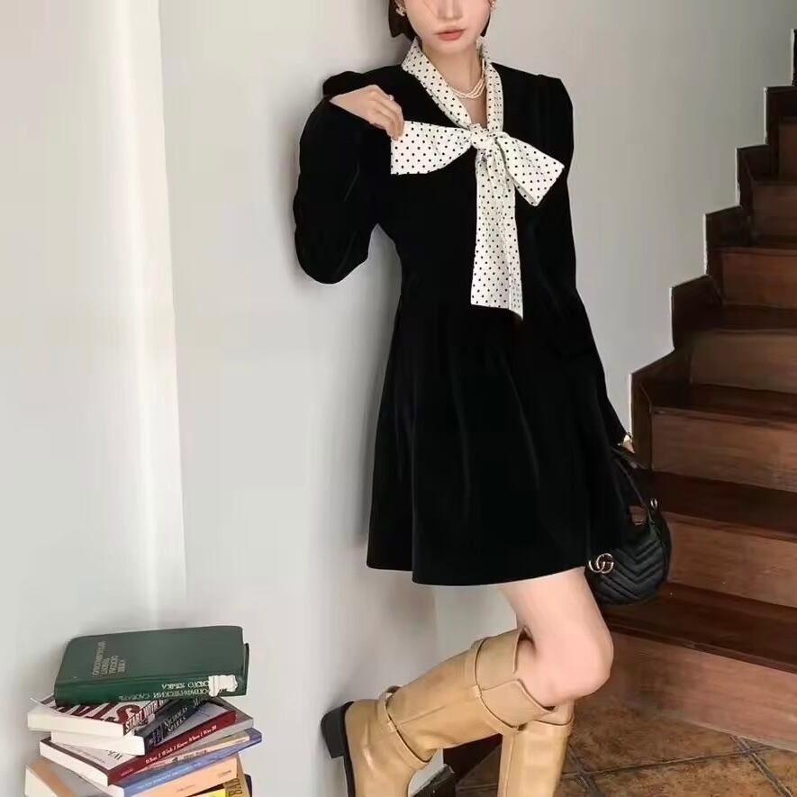 ドットリボンベロアワンピース