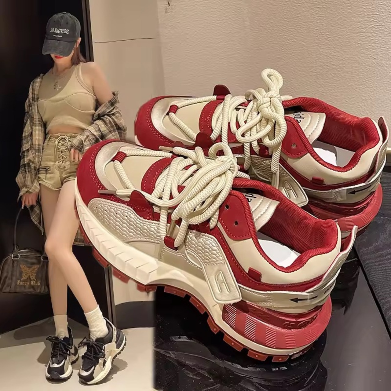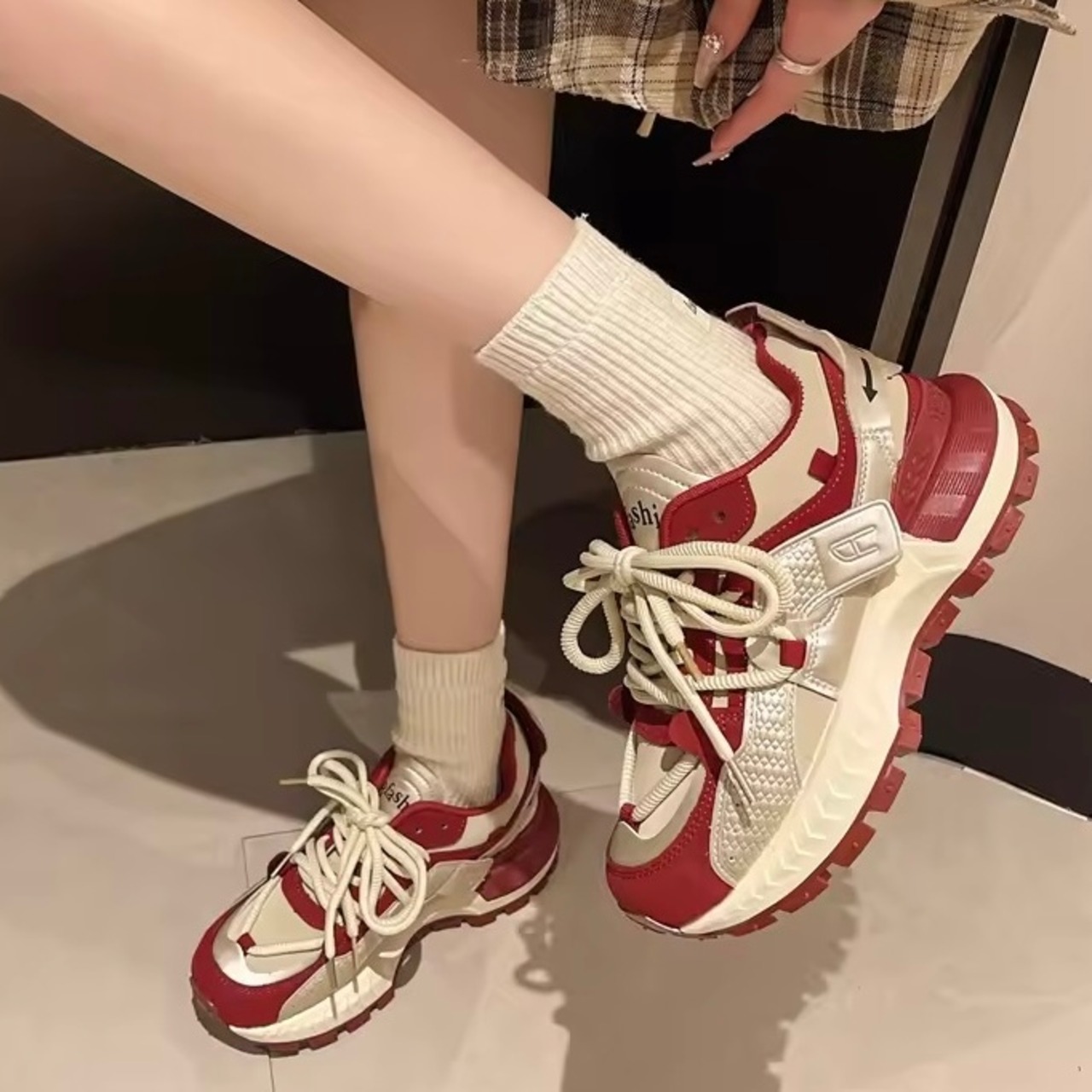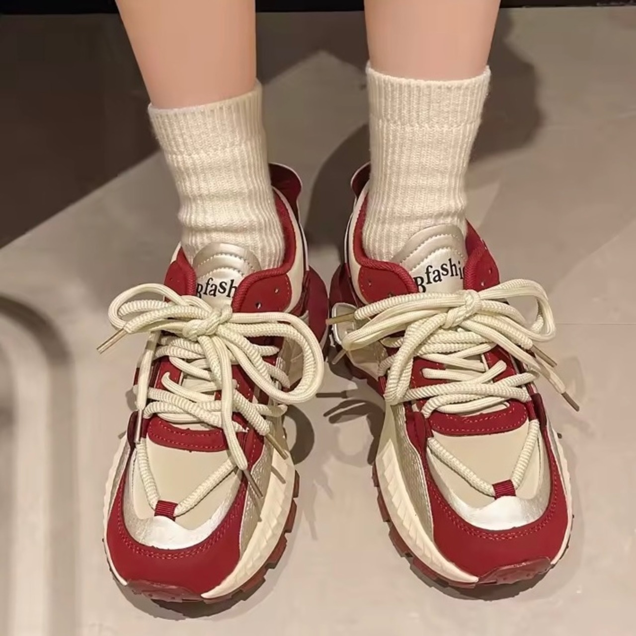 カジュアルレースアップスニーカー 2色展開