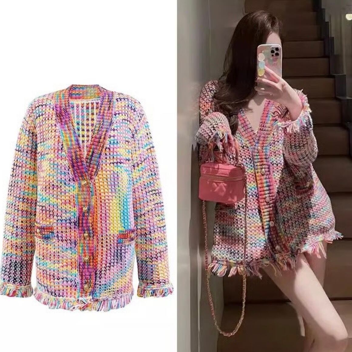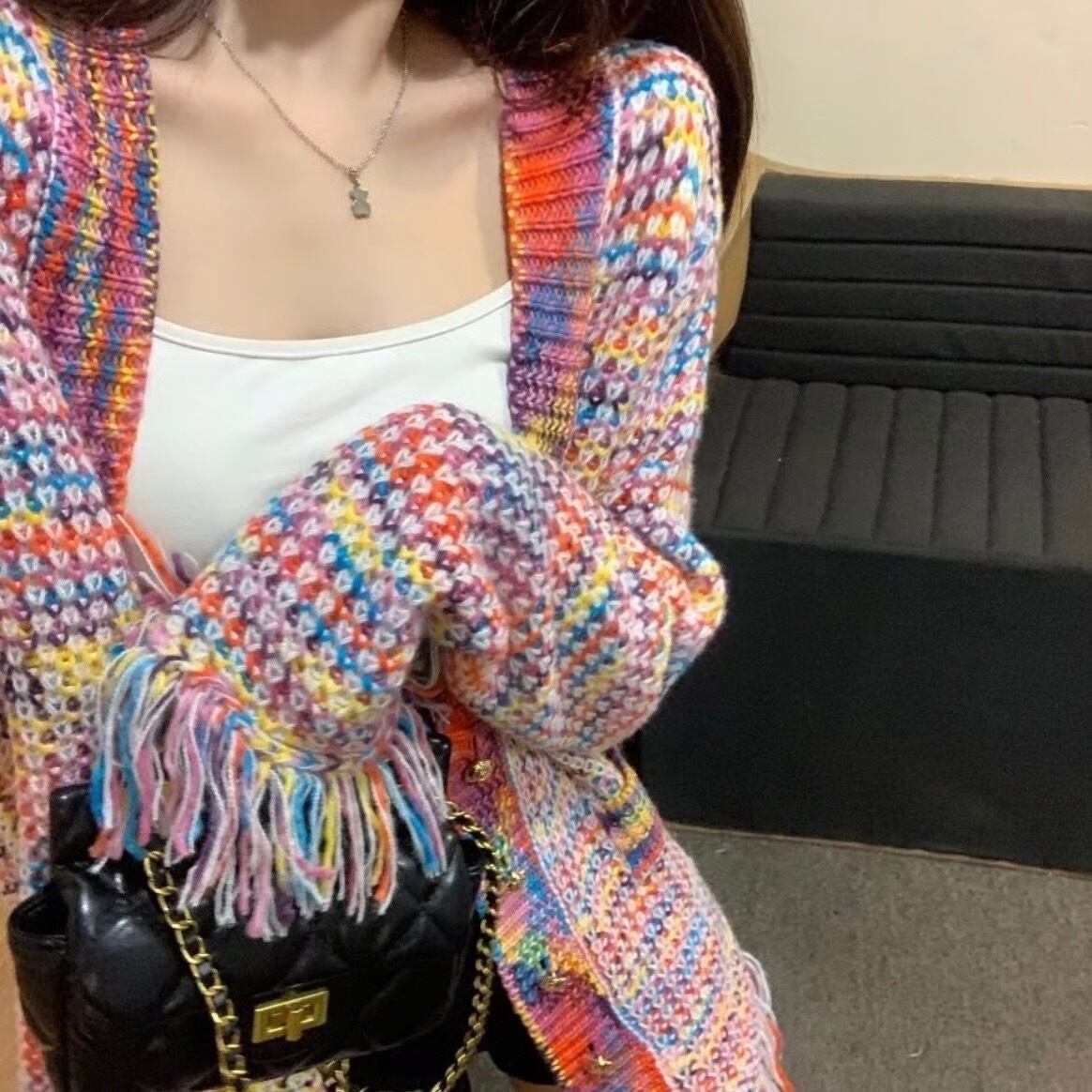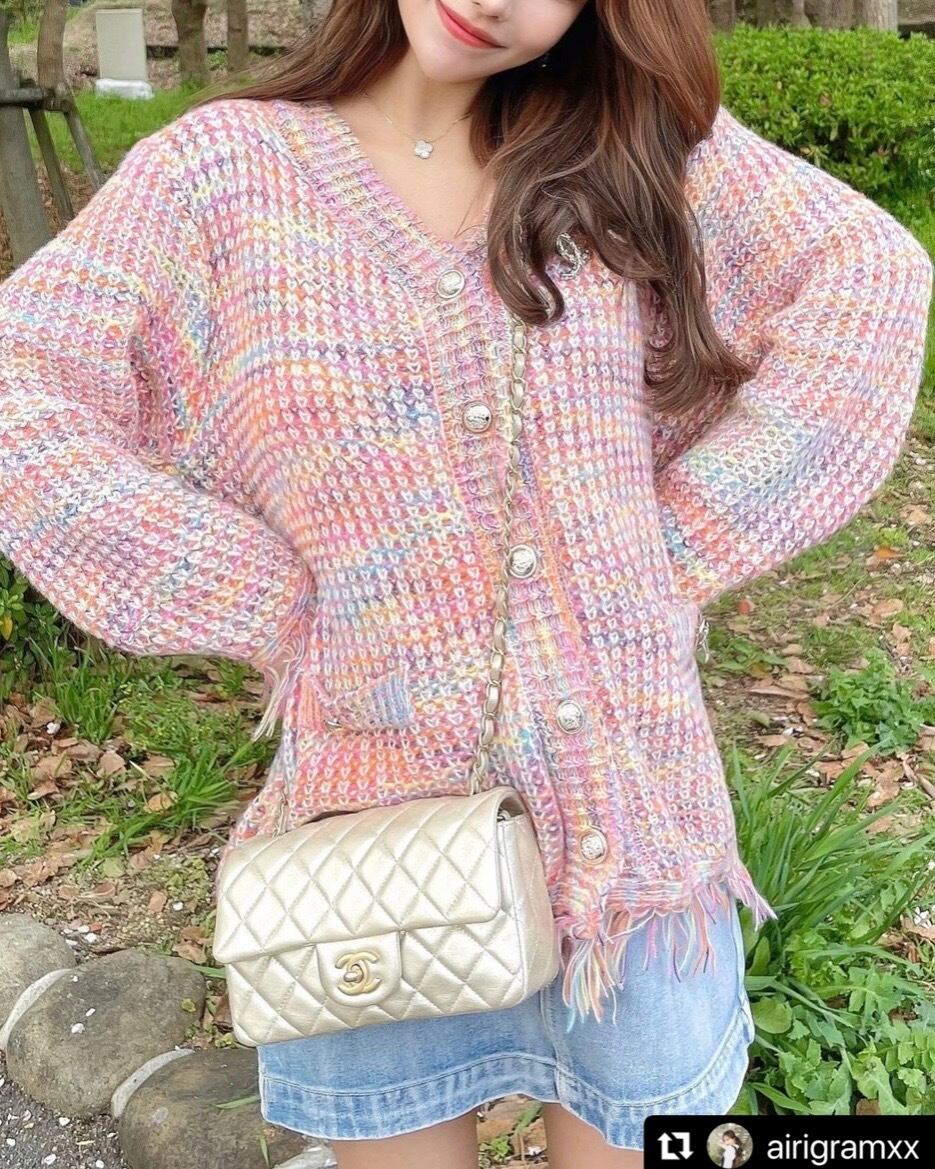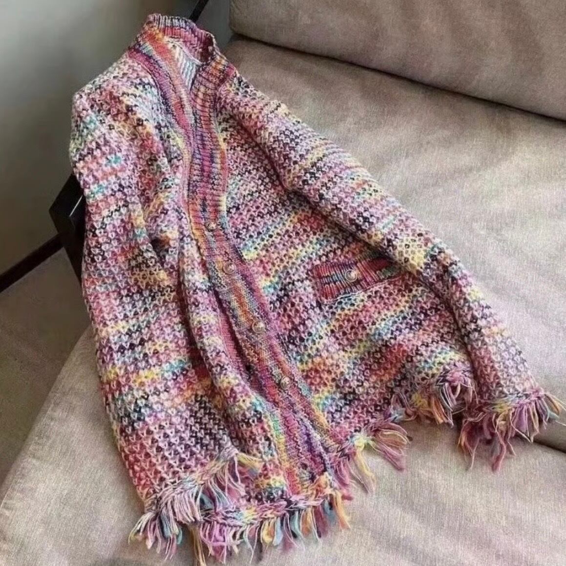 ゴールドボタン レインボータッセルカーディガン