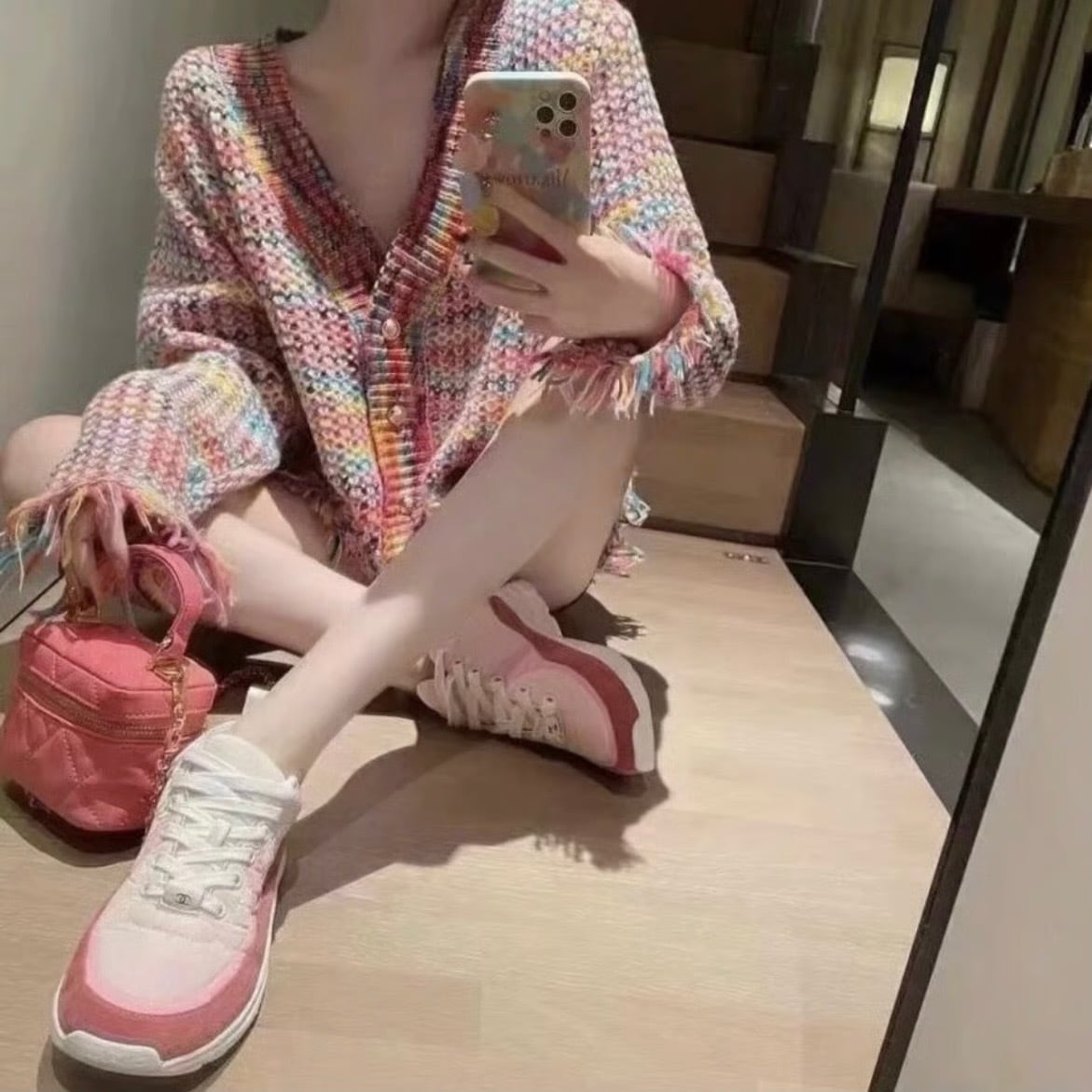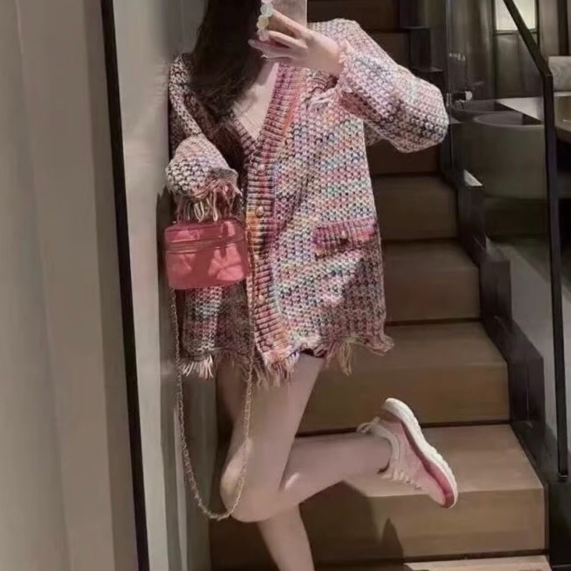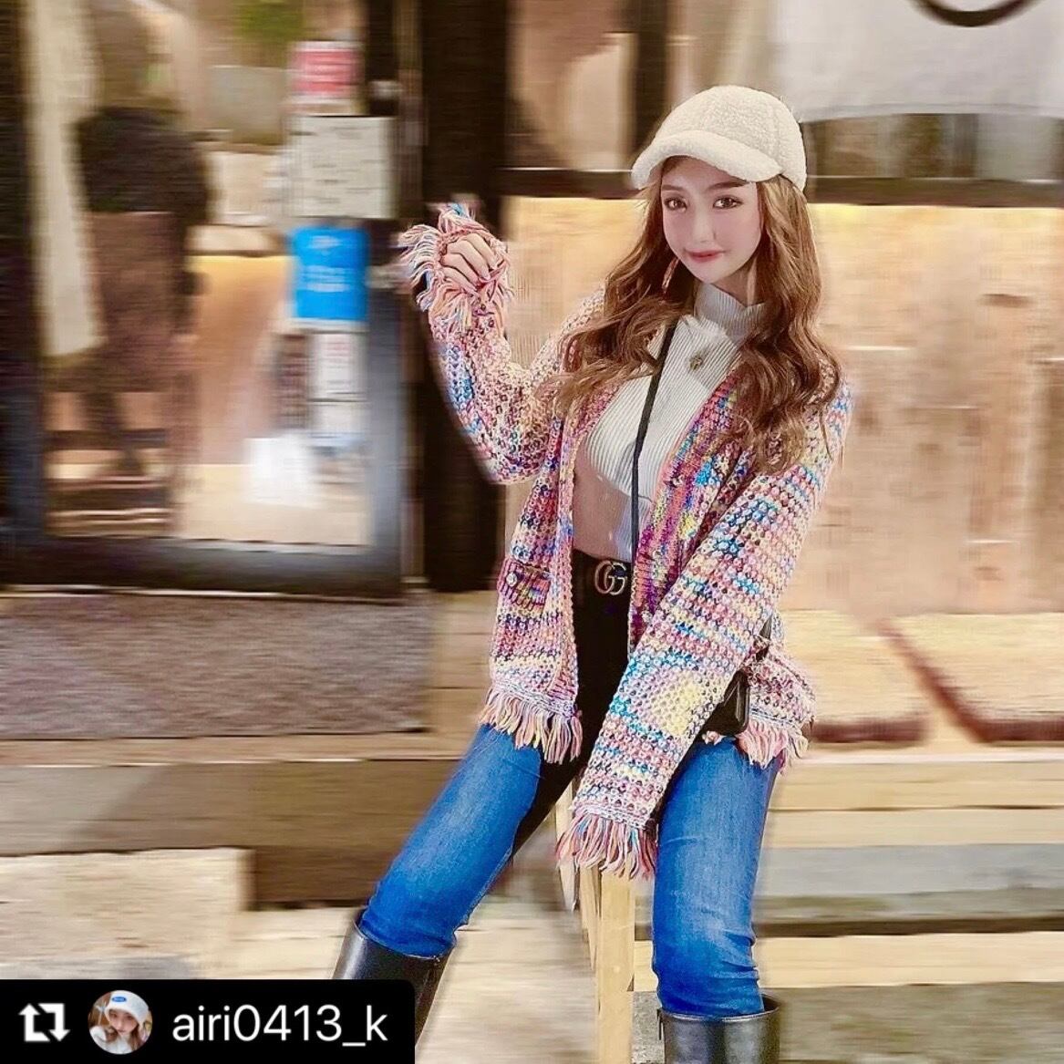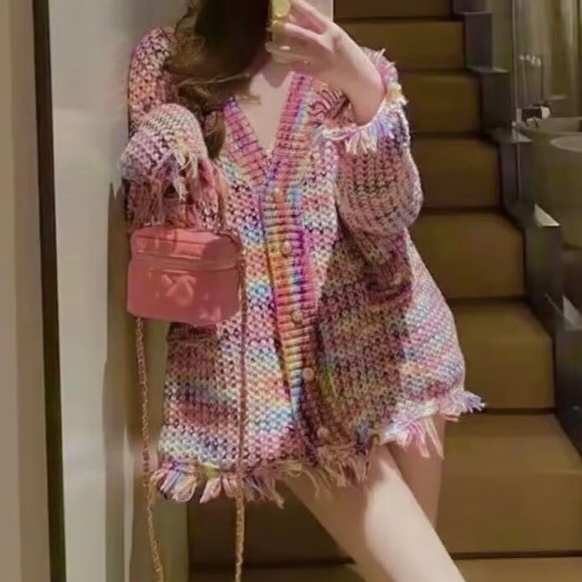 ゴールドボタン レインボータッセルカーディガン
