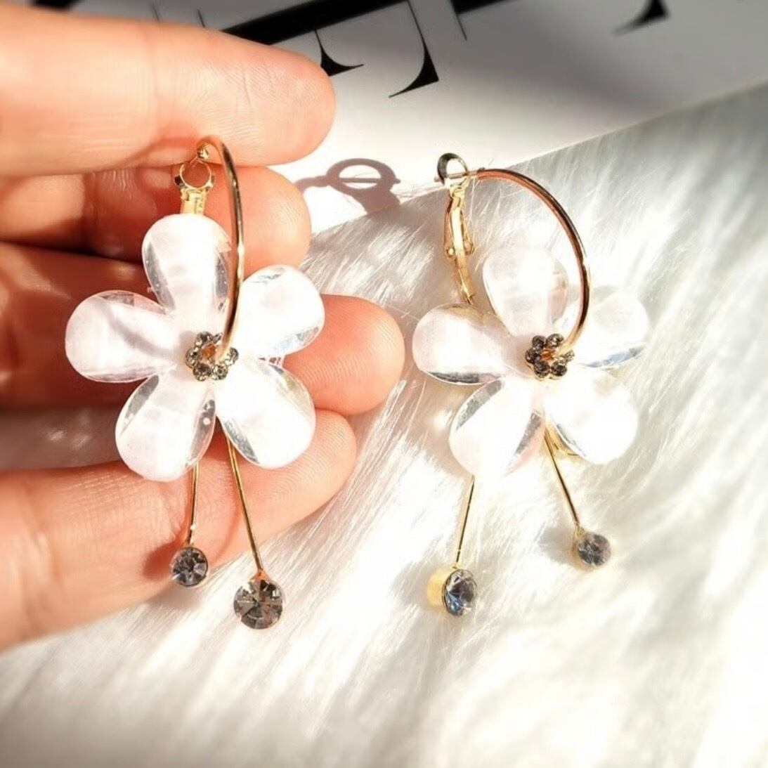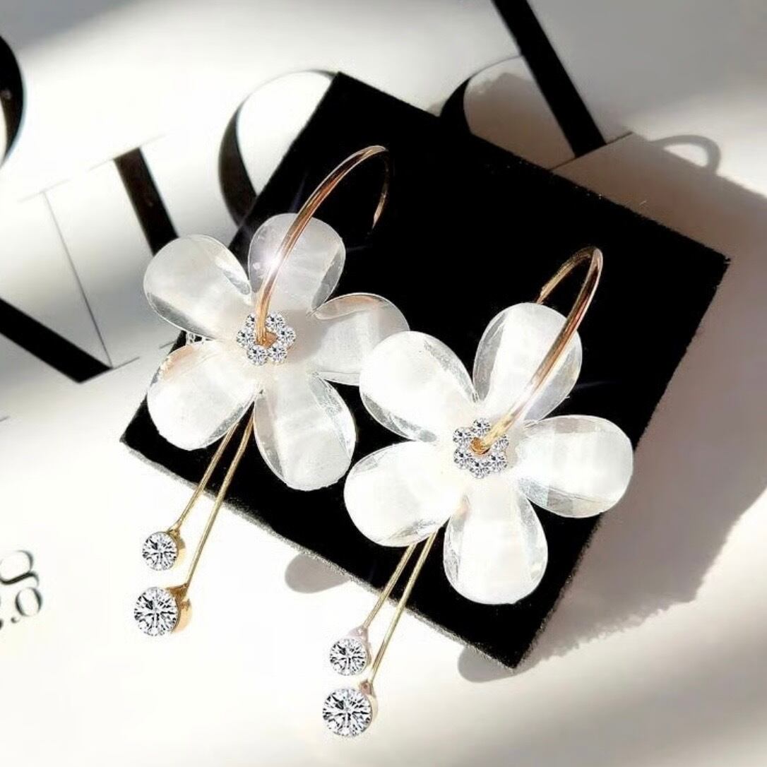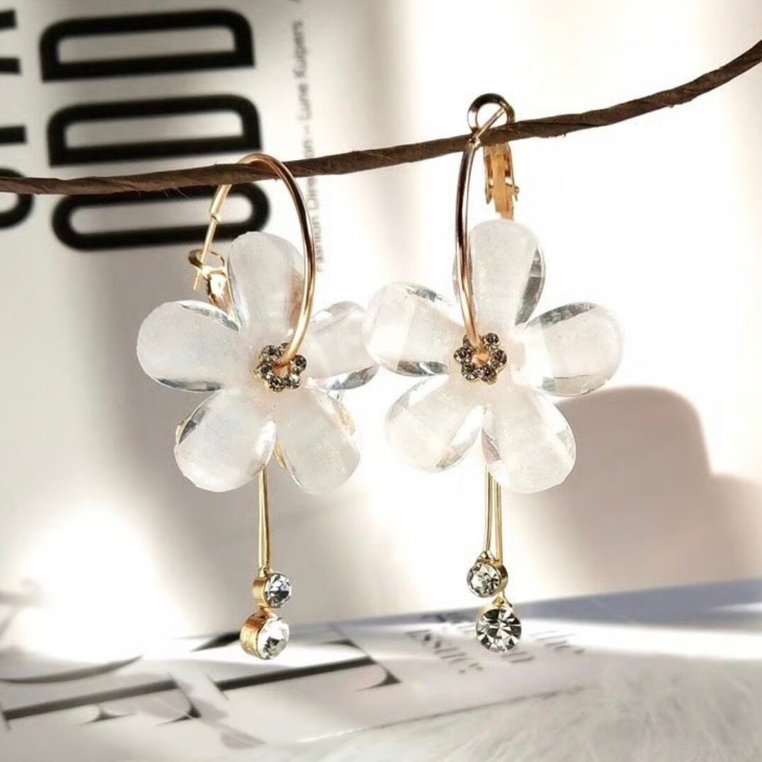 【即納】ジルコニア フラワーフープピアス
