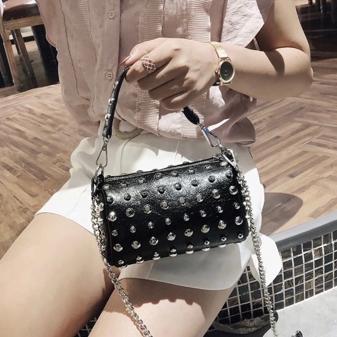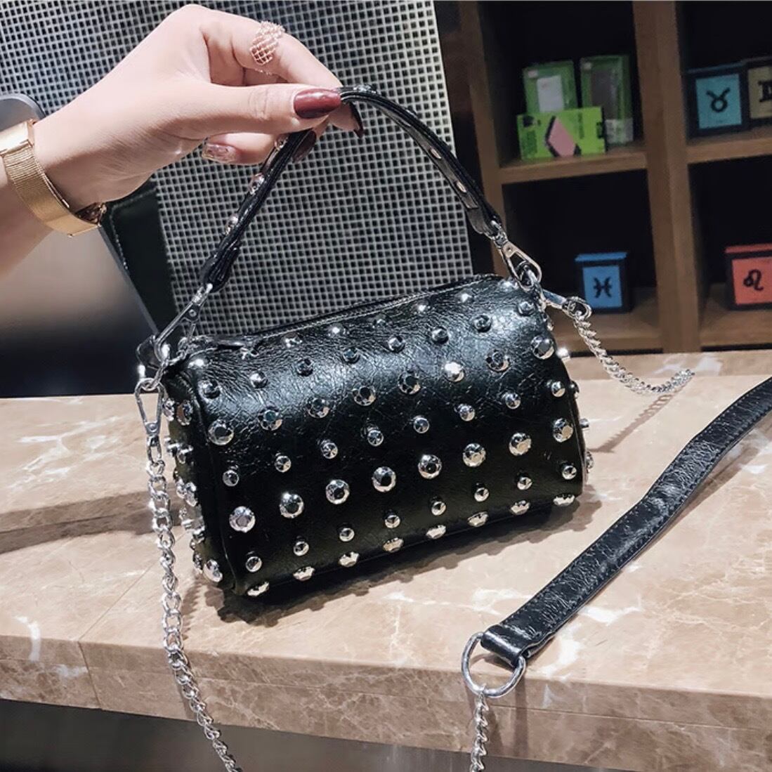 【即納】スタッズ ミニボストンバッグ