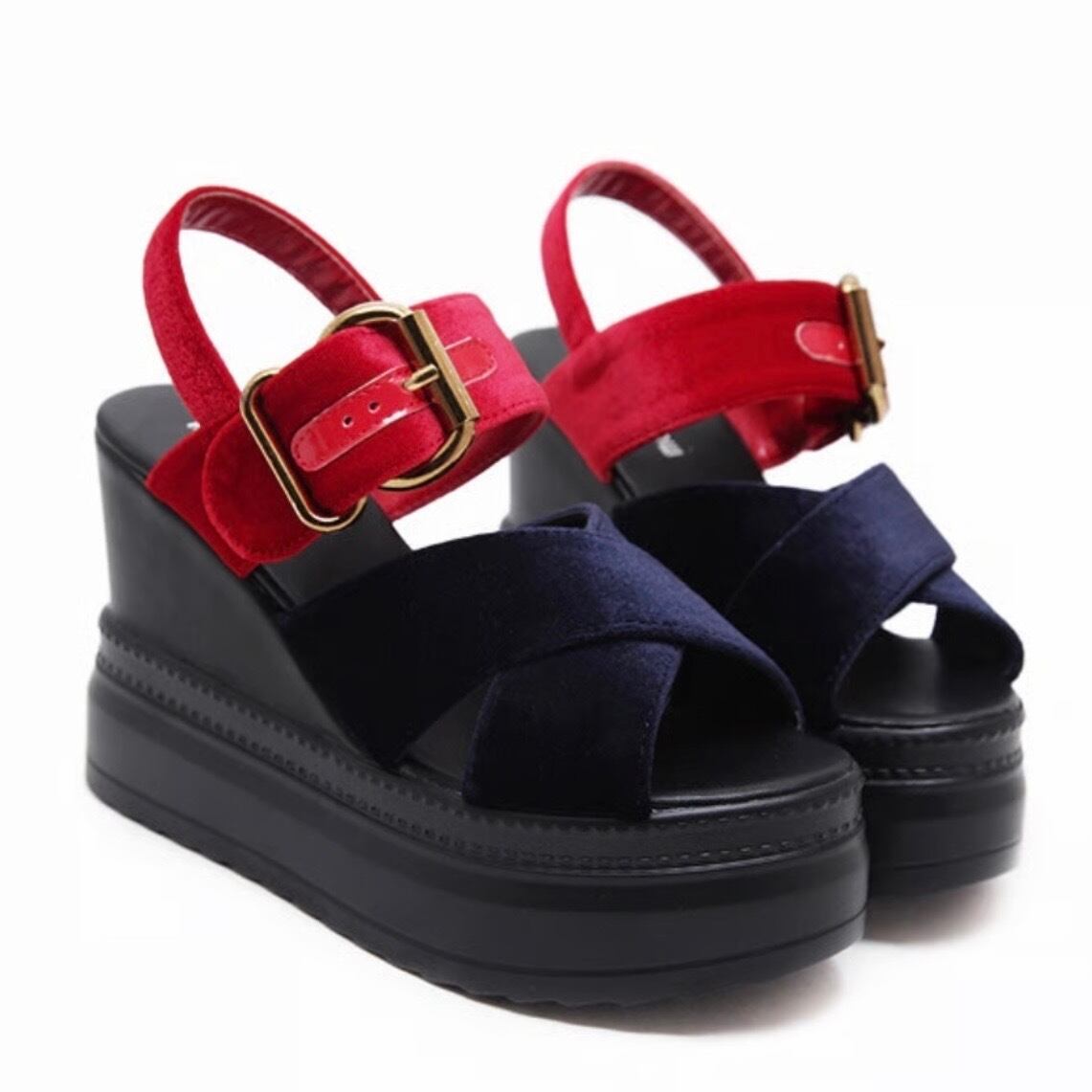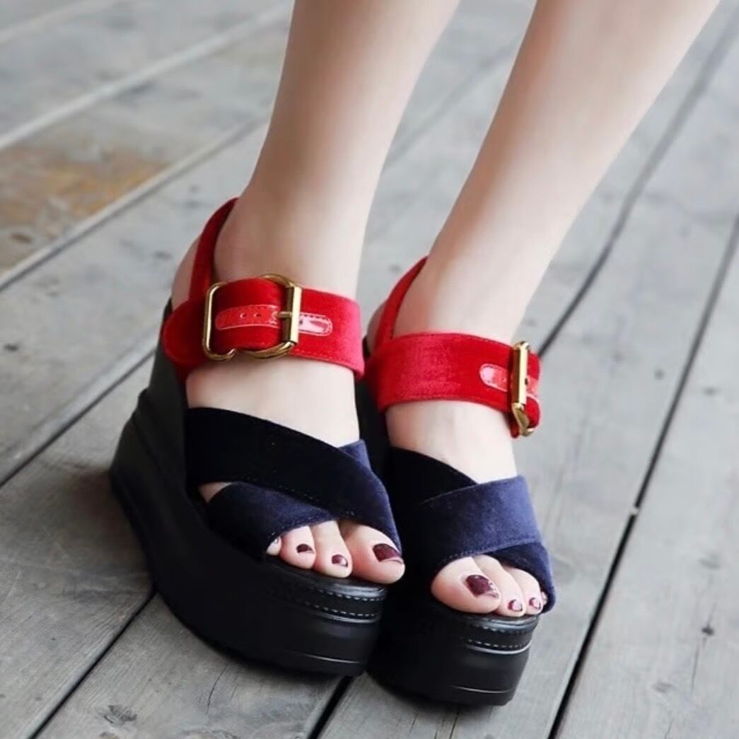 【22.0cm即納】ベロアダブルバンド ウェッジサンダル