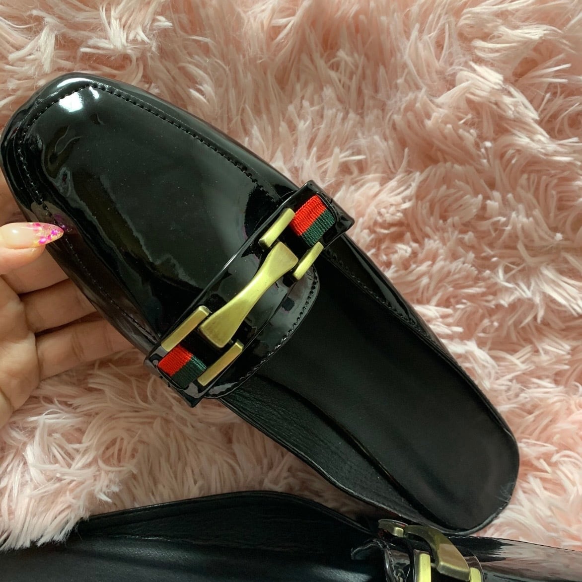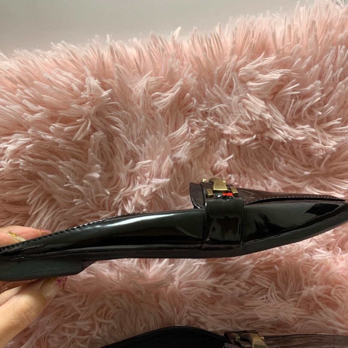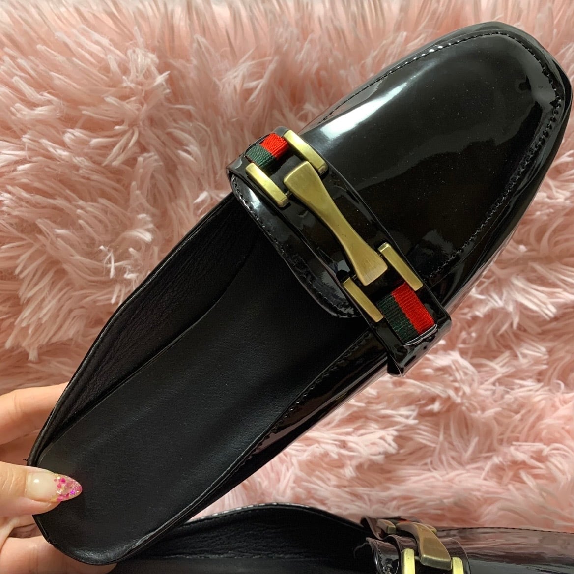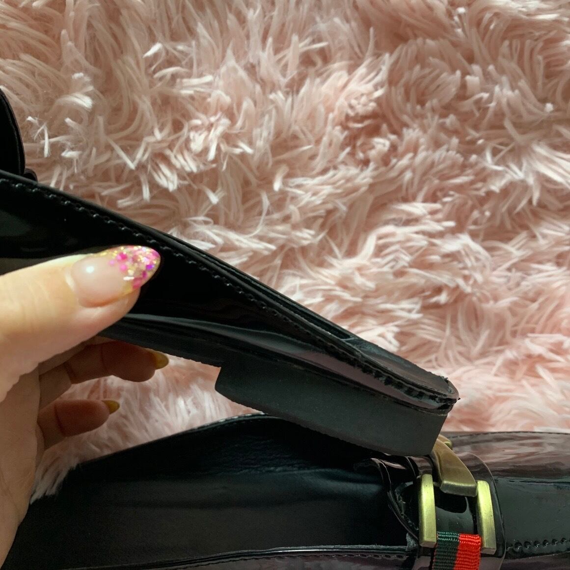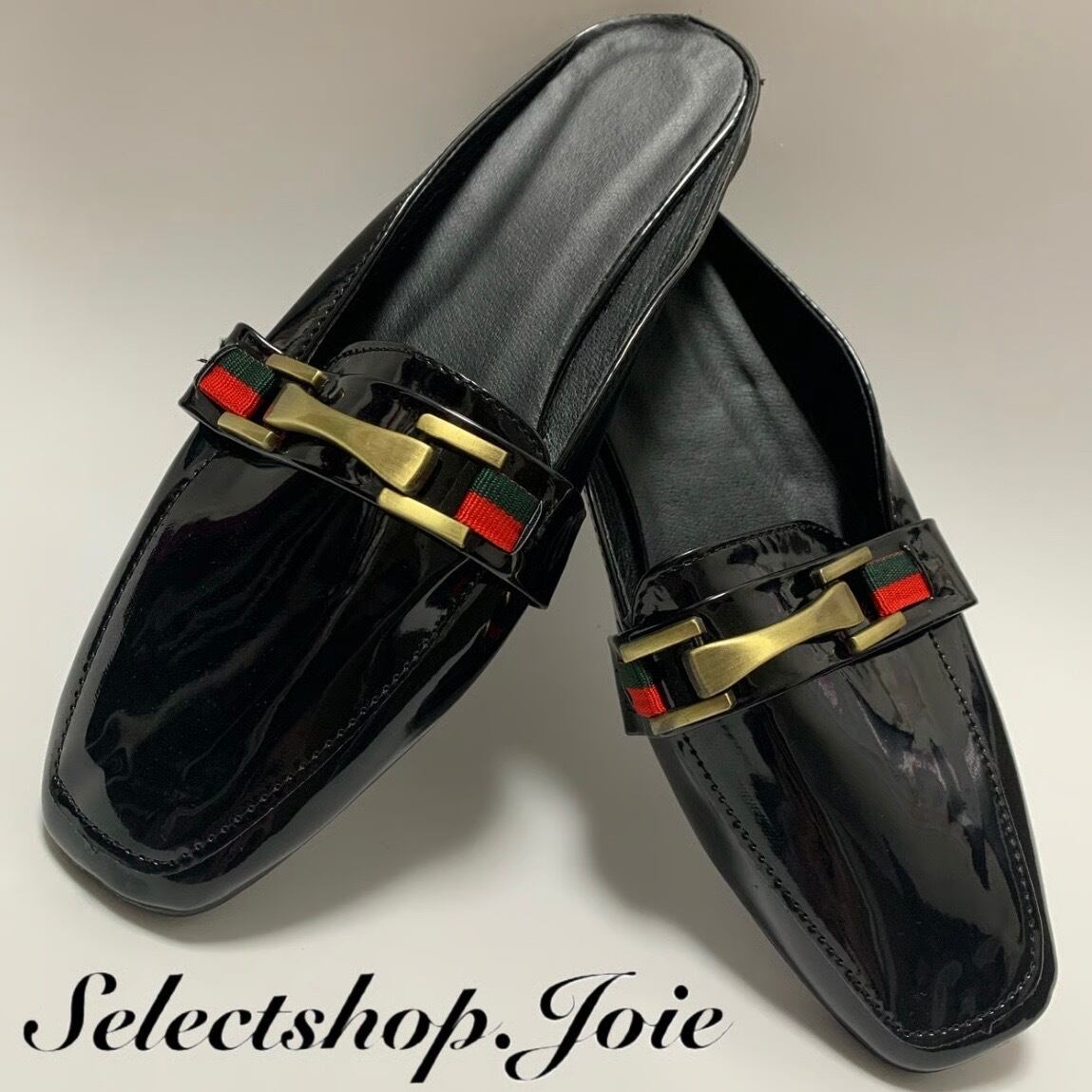 【24.5cm即納】ダブルカラー ゴールドバックルレザースリッポン