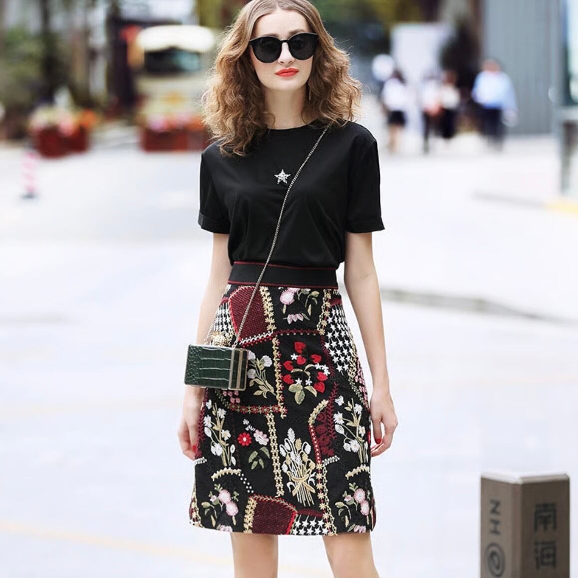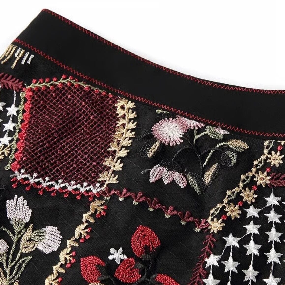 【即納】クリスタルスターTシャツ フラワー刺繍スカートセット