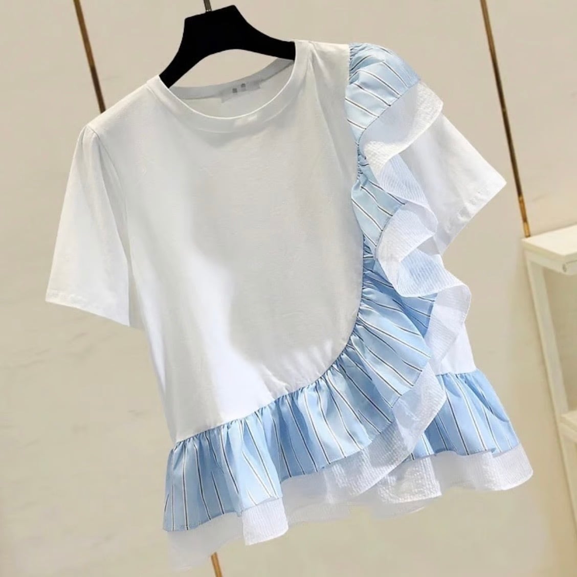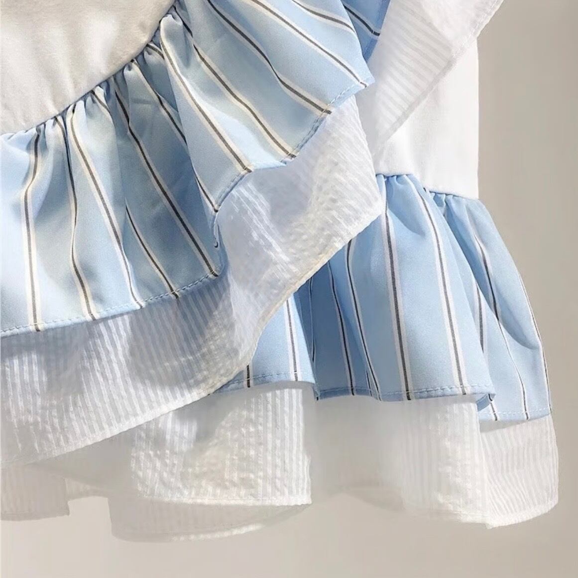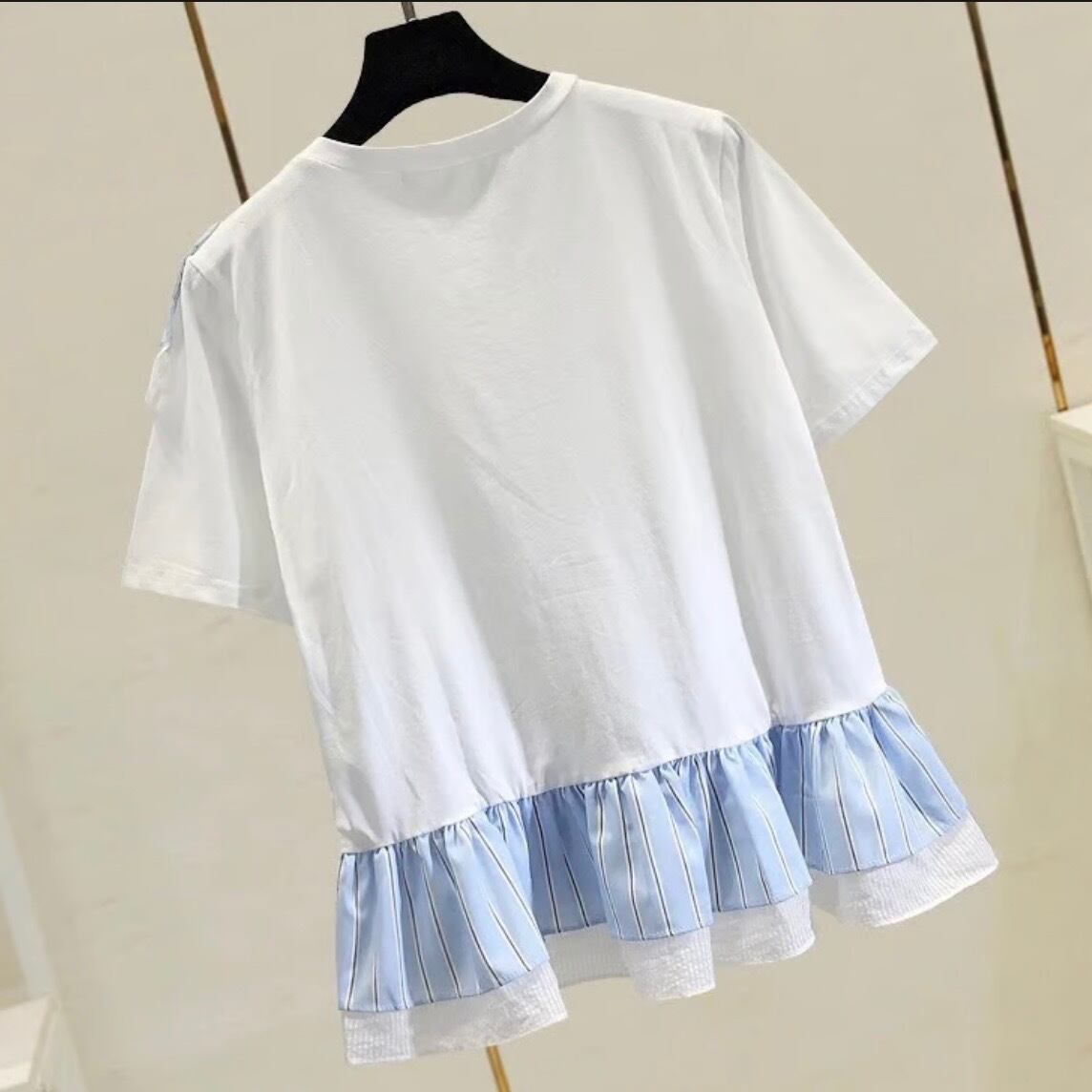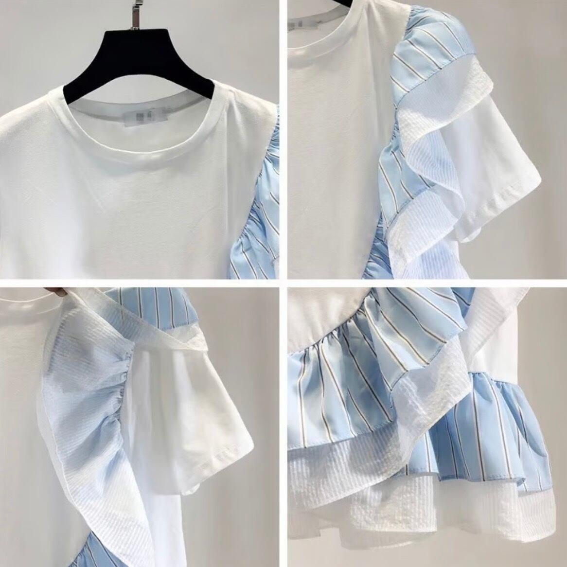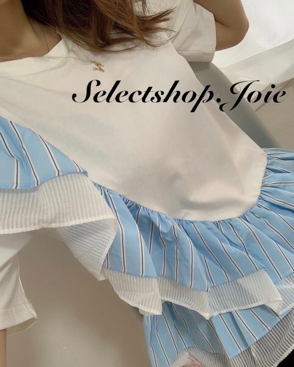 【即納】シフォンストライプフリルTシャツ