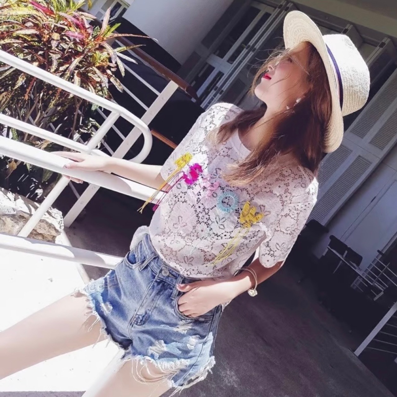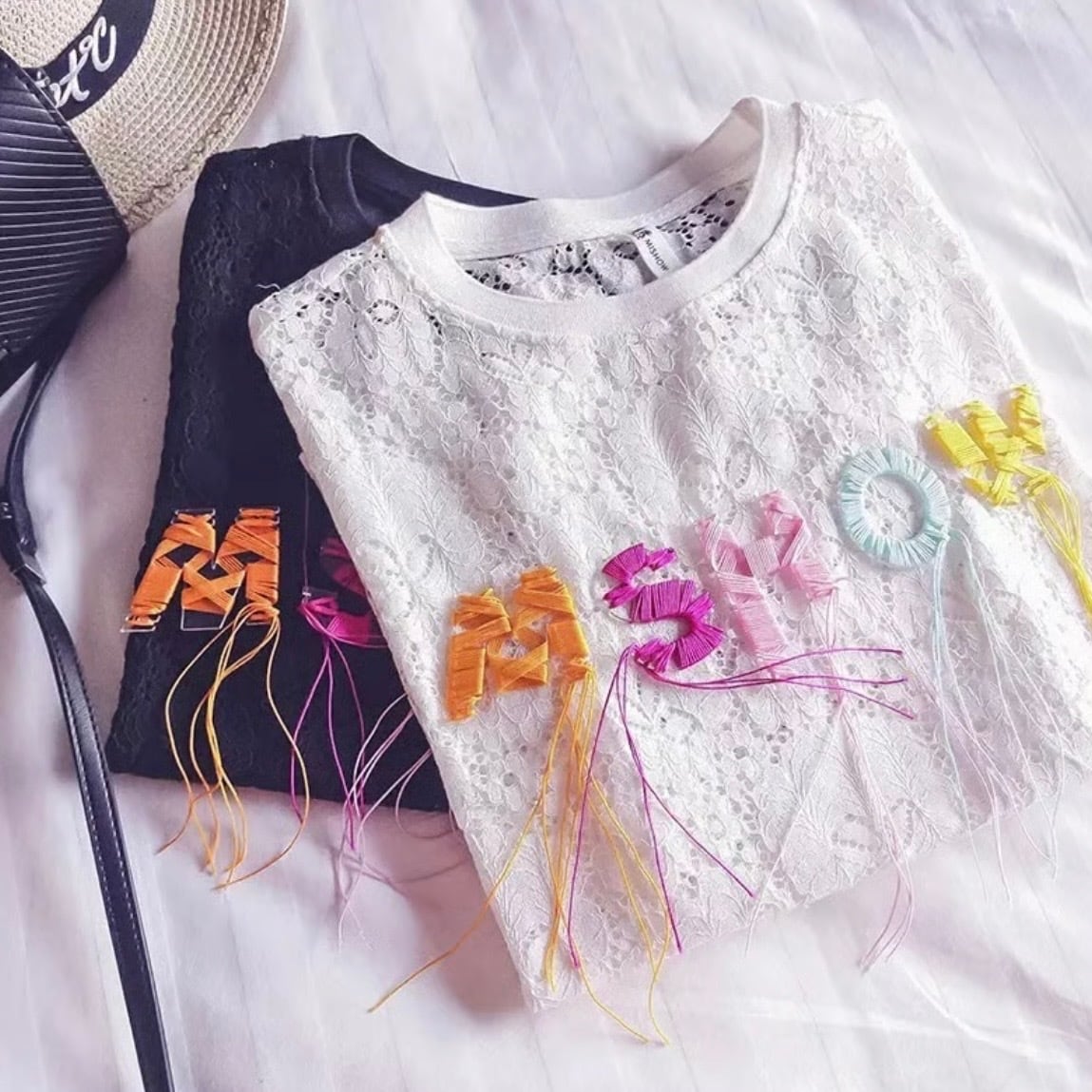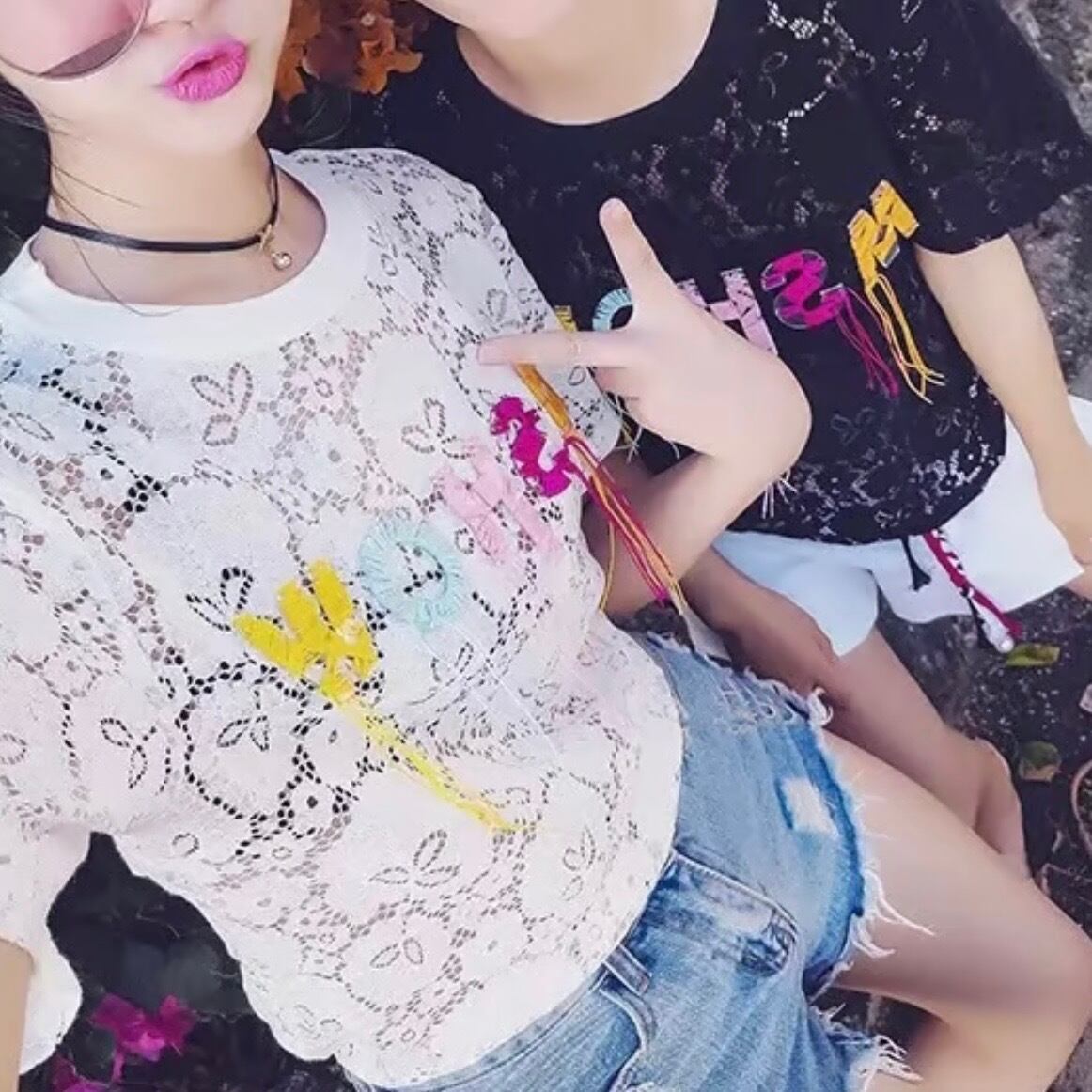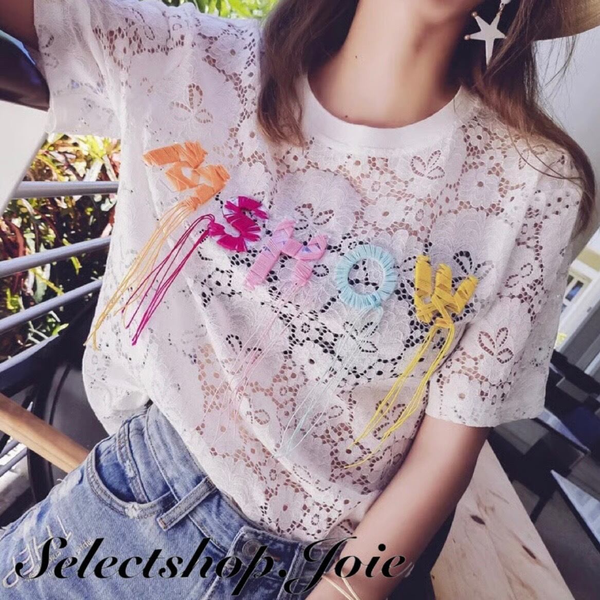 【即納】レースデザイン ロゴ刺繍Tシャツ 2色展開