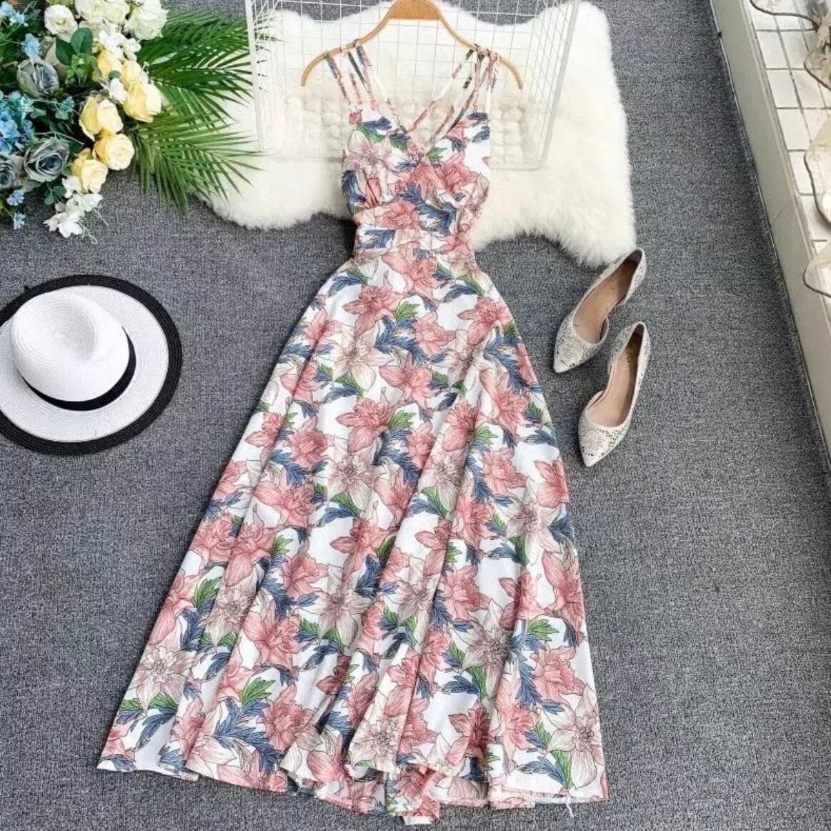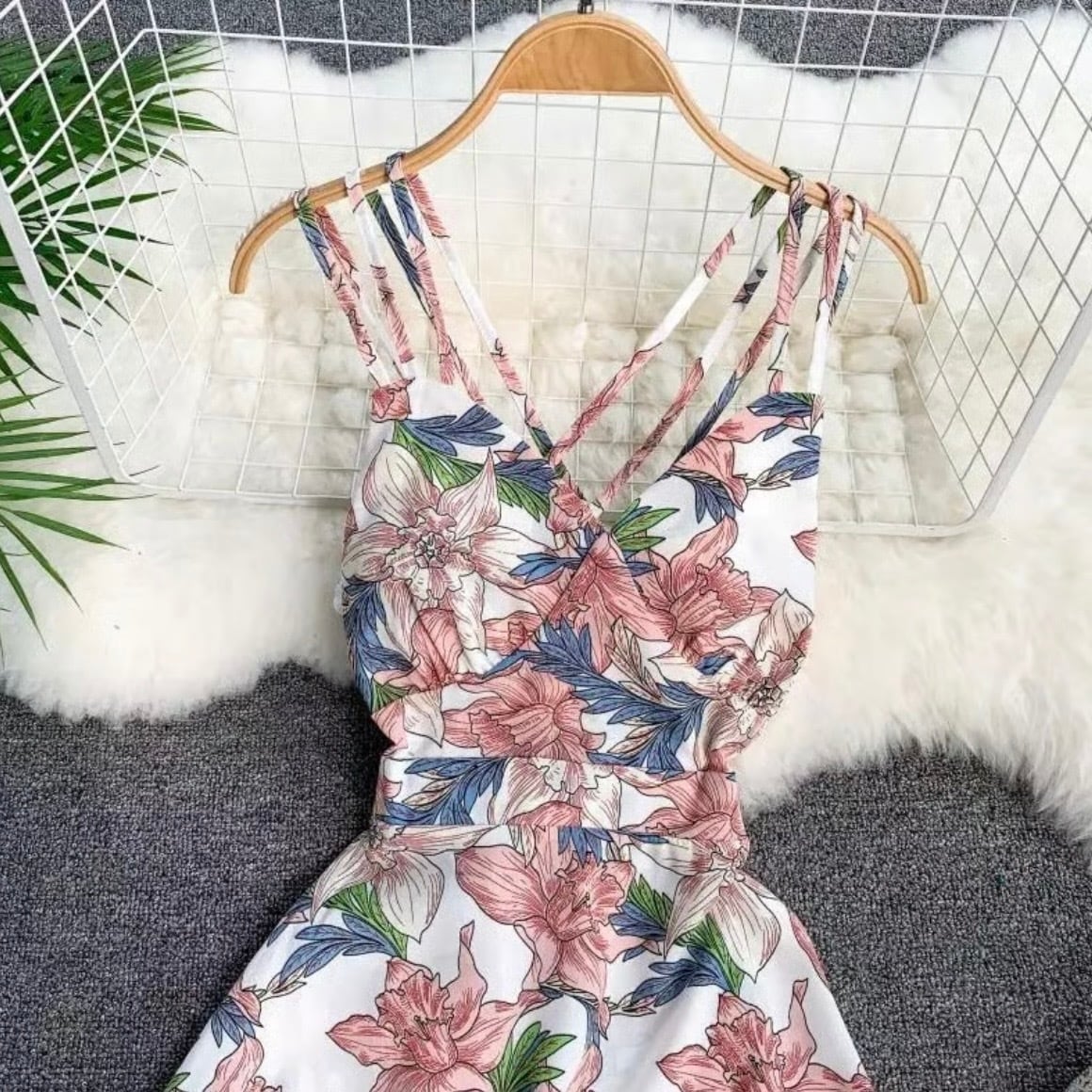 【即納】バッククロスフラワーワンピース