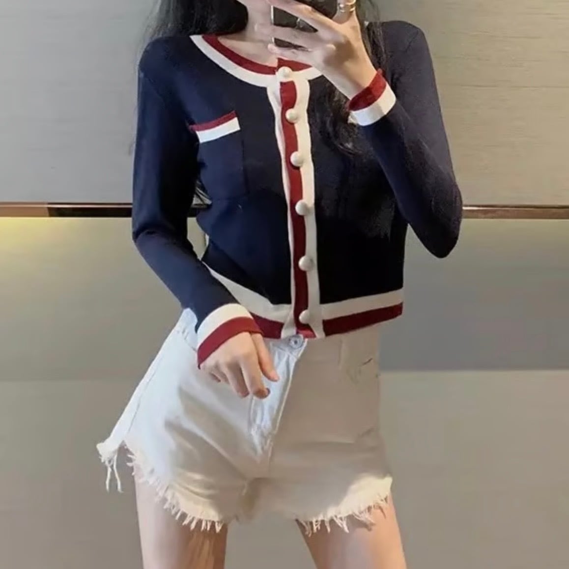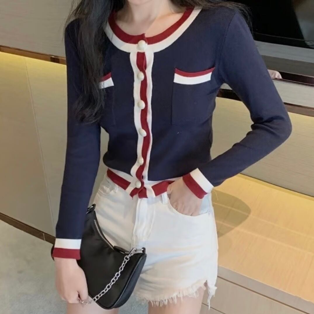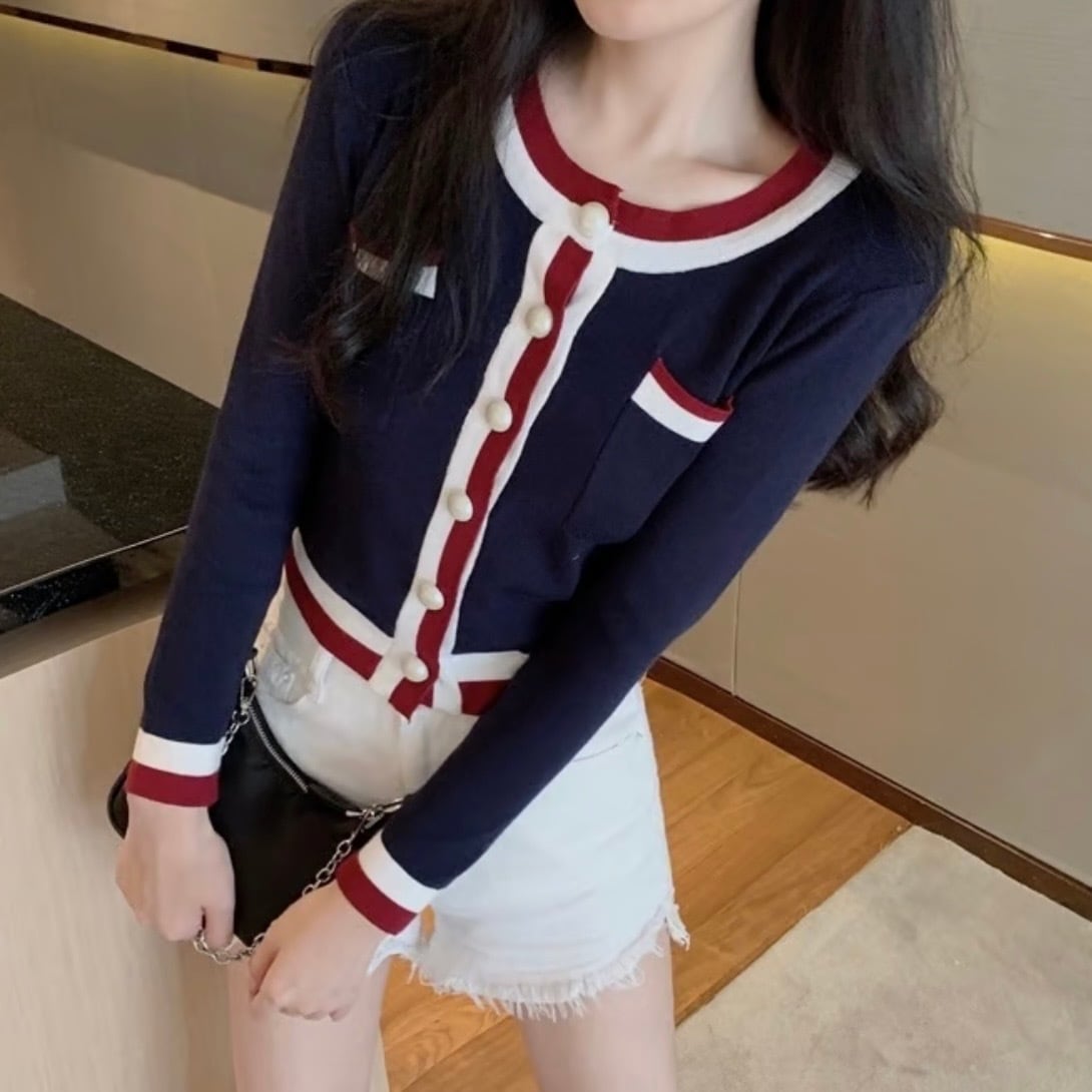 【即納】トリコロールカラー カーディガン