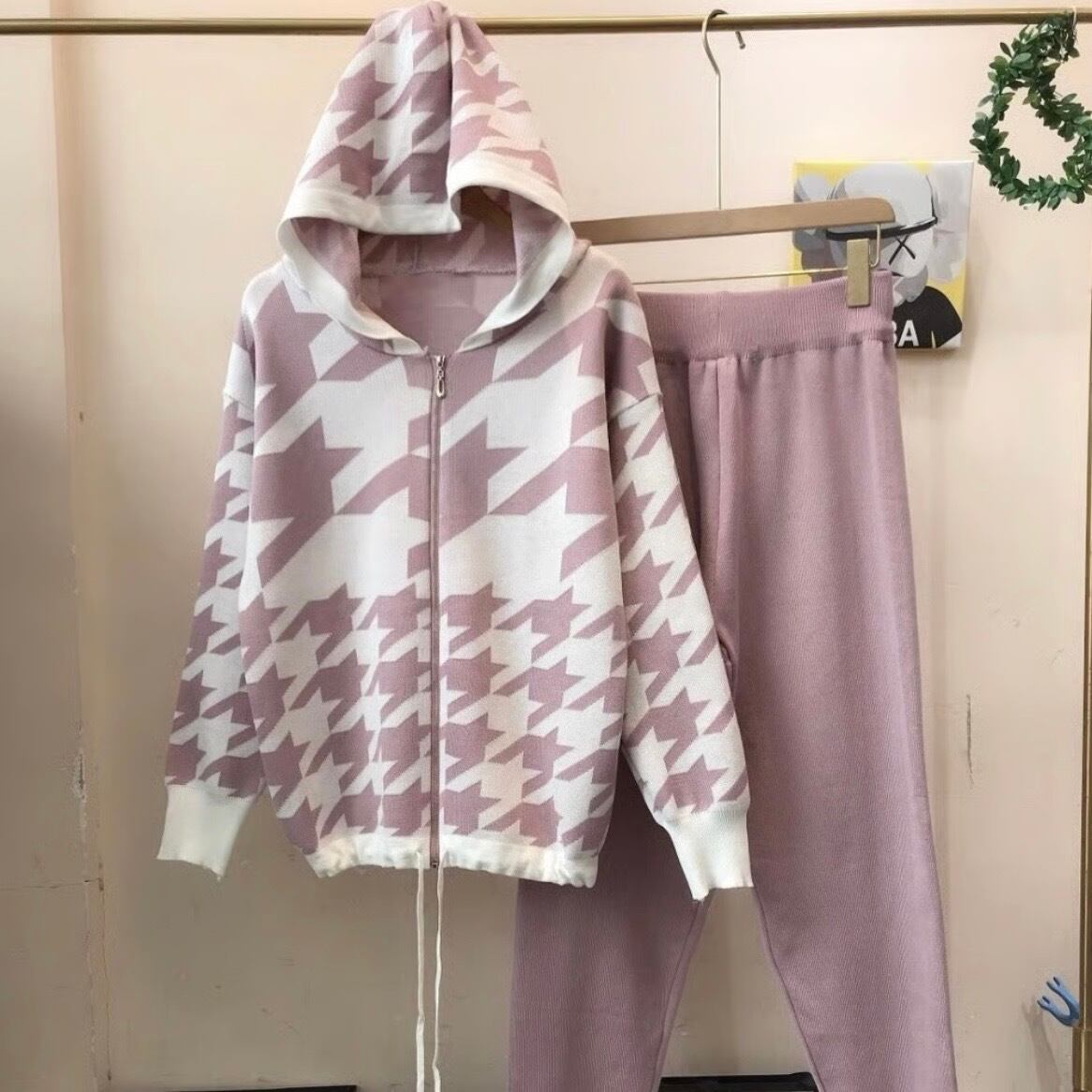 【即納】千鳥チェック ニットセットアップ