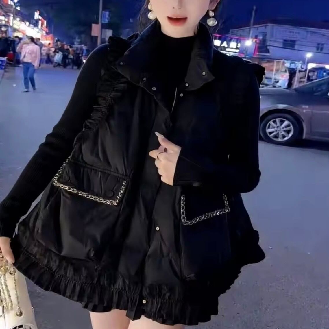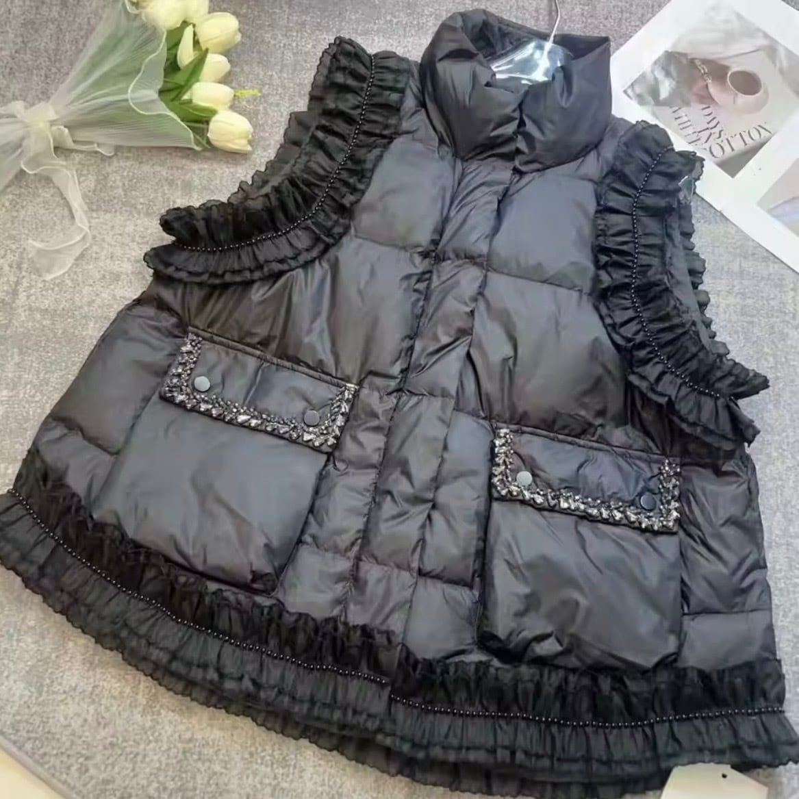 フリルブラックダウンベスト