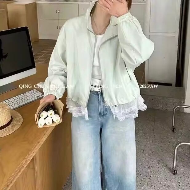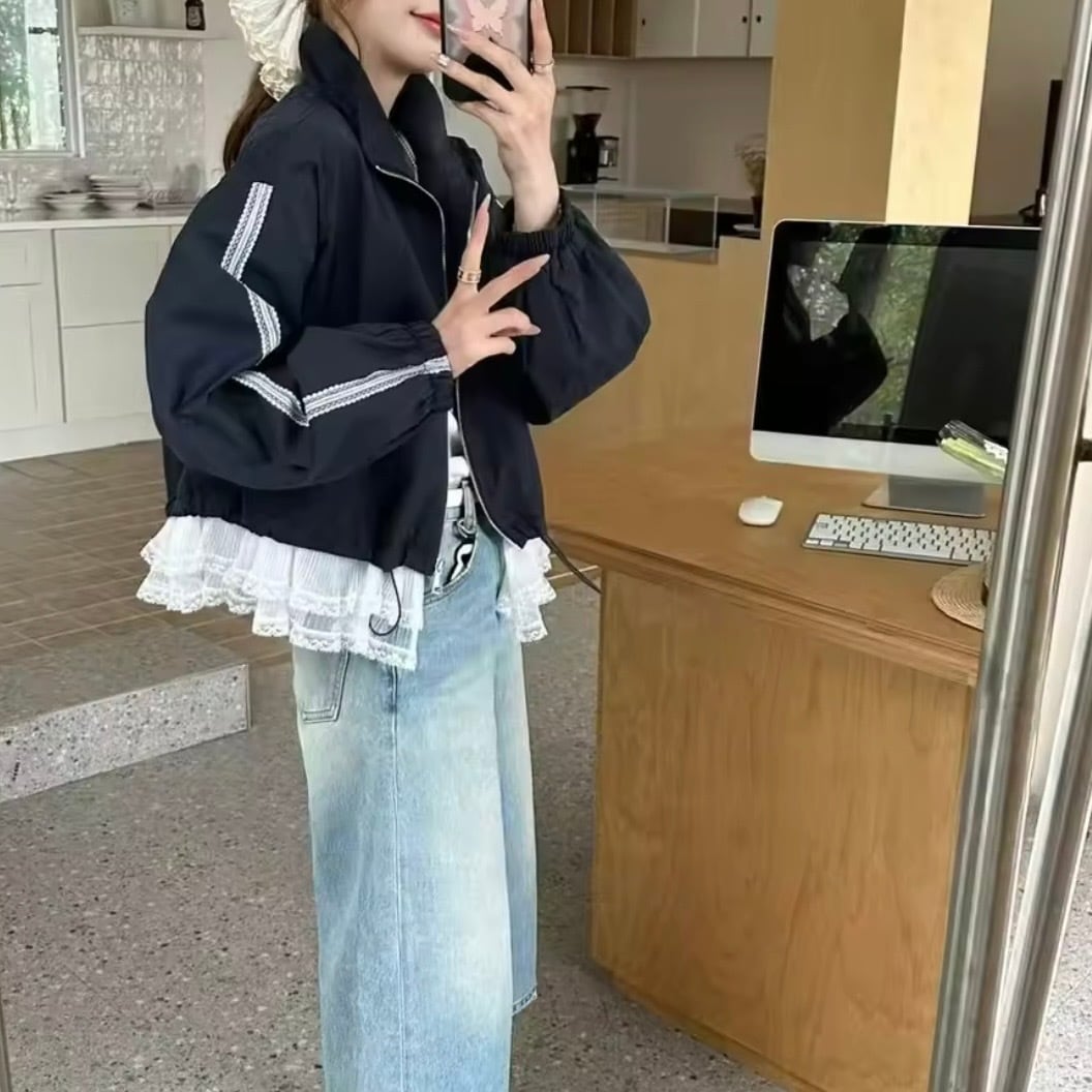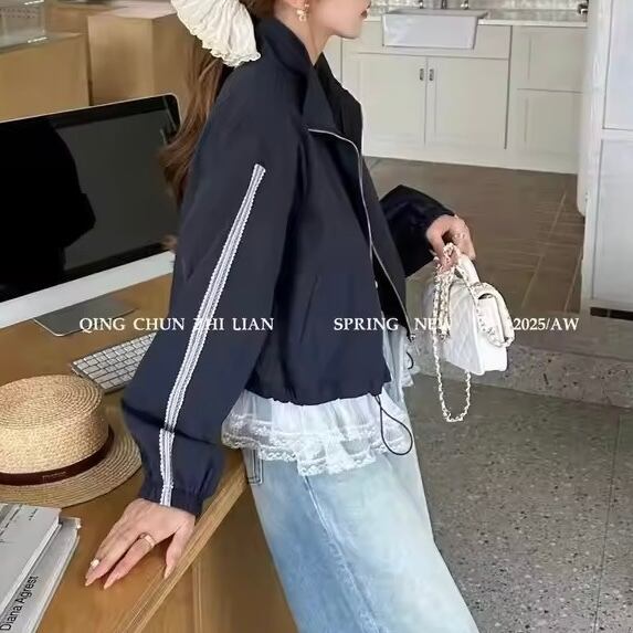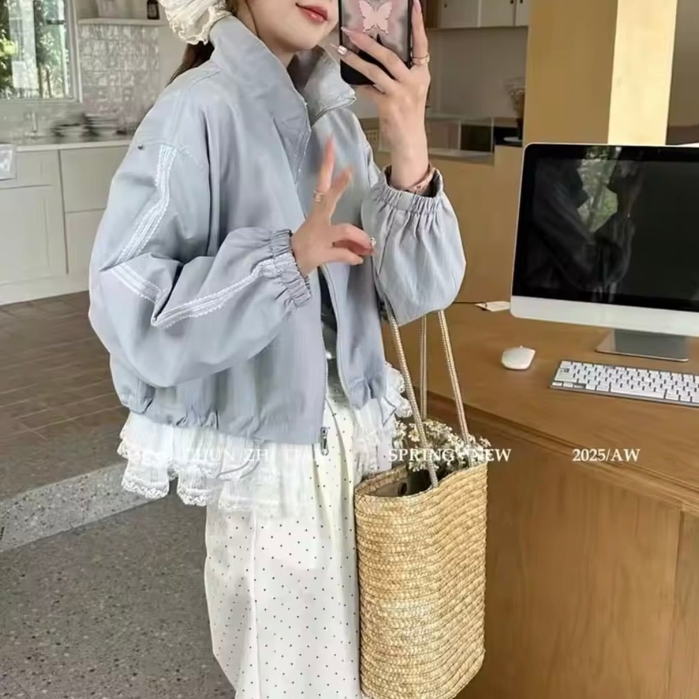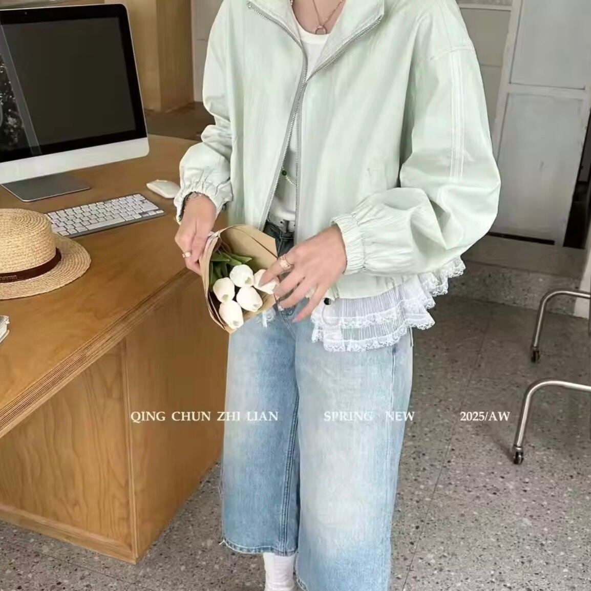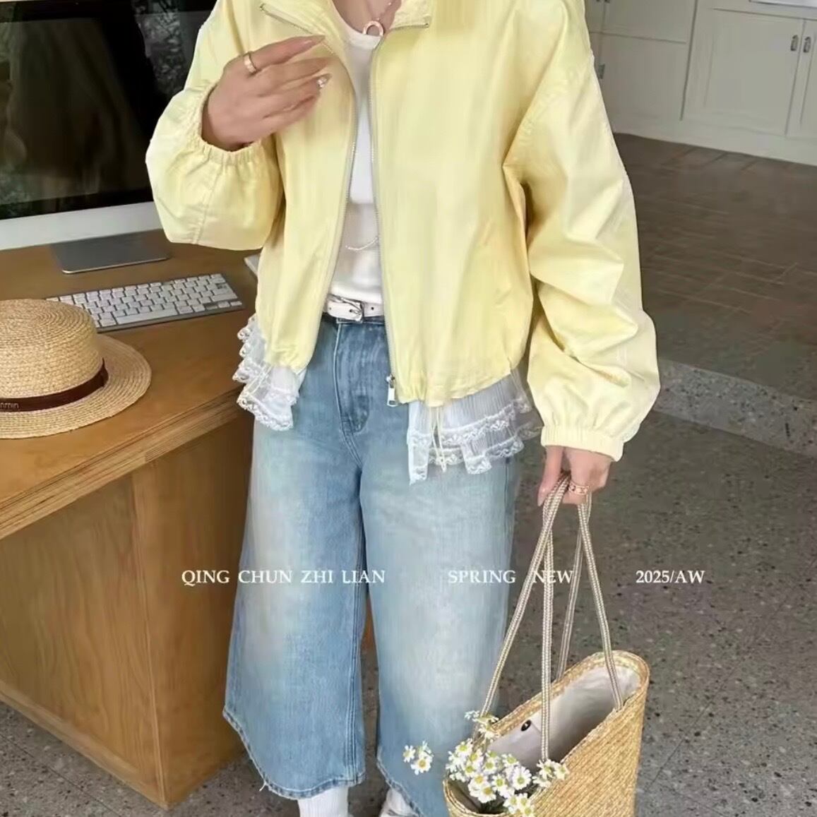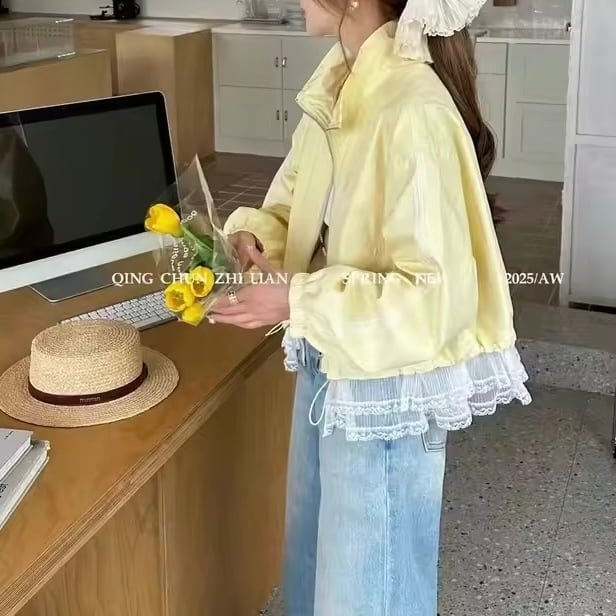 ヘムレースジャケット 4色展開 【韓国 春服 春アウター 薄手アウター ナイロンジャケット】