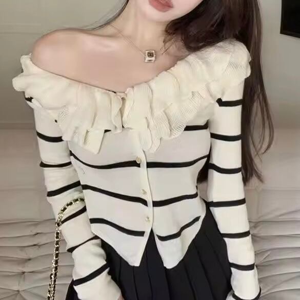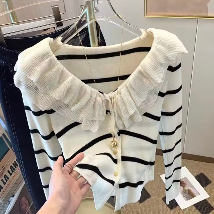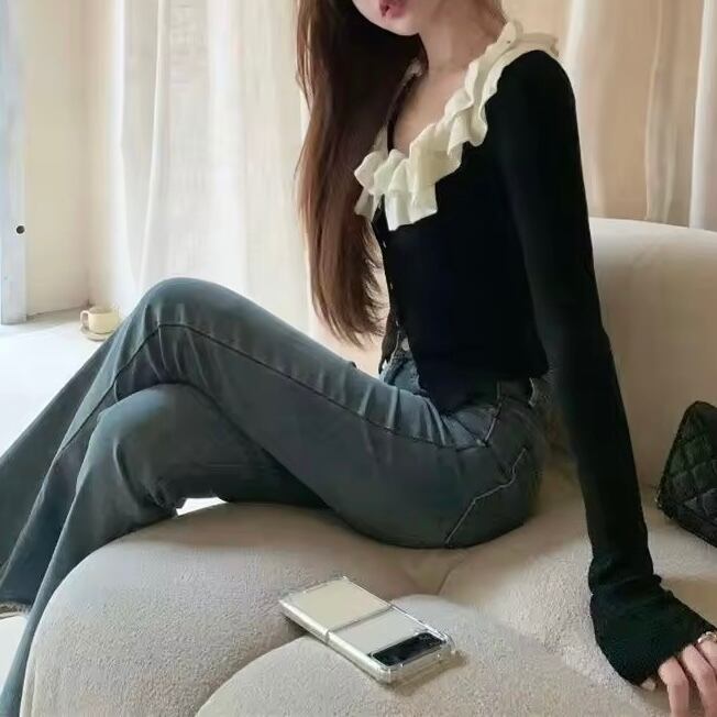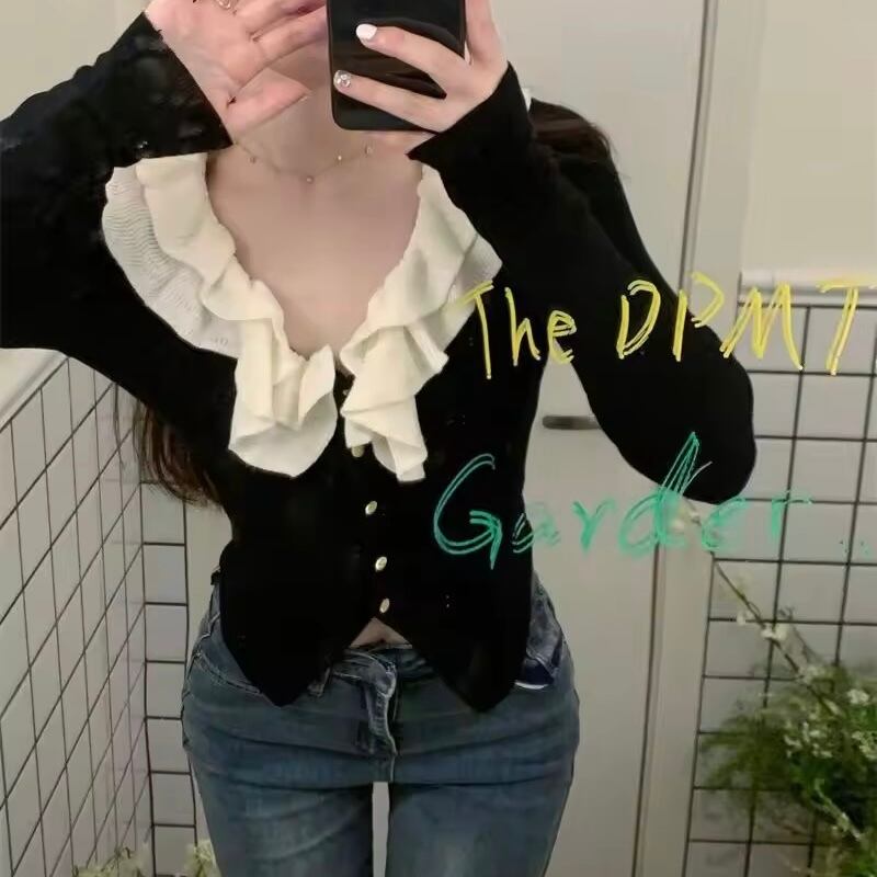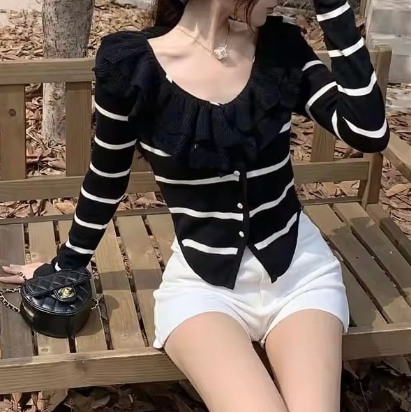 フリルネックカーディガン 3色展開