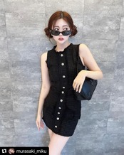 高級感漂うブラックツイードのセットアップが登場しました。上下セットでコーディネートも簡単に決まる、おしゃれな一着です。フロントに配されたゴールドボタンがアクセントとなり、華やかさをプラスしてくれます。シックなブラックツイードは、オフィスやパーティーなど様々なシーンで活躍してくれること間違いなし。結婚式やパーティーなどの特別な日にもおすすめのアイテムです。高品質なツイード生地と丁寧な縫製で、長く着用していただけるだけでなく、エレガントな雰囲気も演出してくれます。おしゃれで洗練されたスタイルを手に入れたい方にぜひオススメしたいアイテムです。