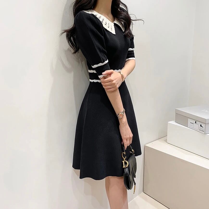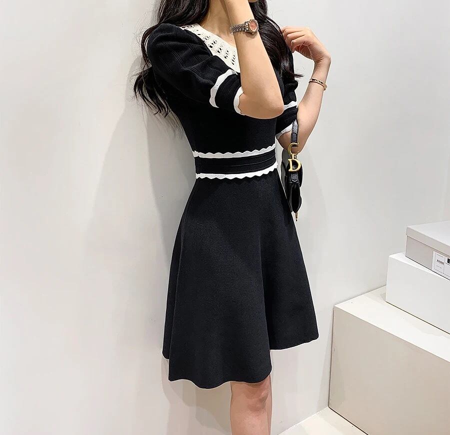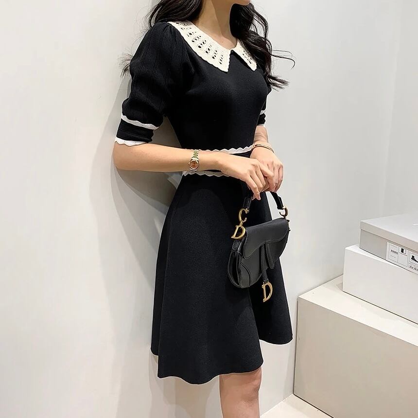 ホワイトステッチ ニットワンピース