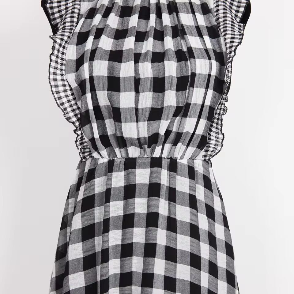 チェックロングワンピース