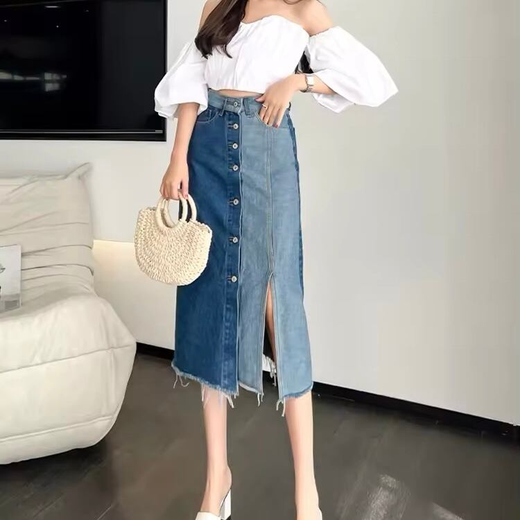 バイカラースリットデニムスカート