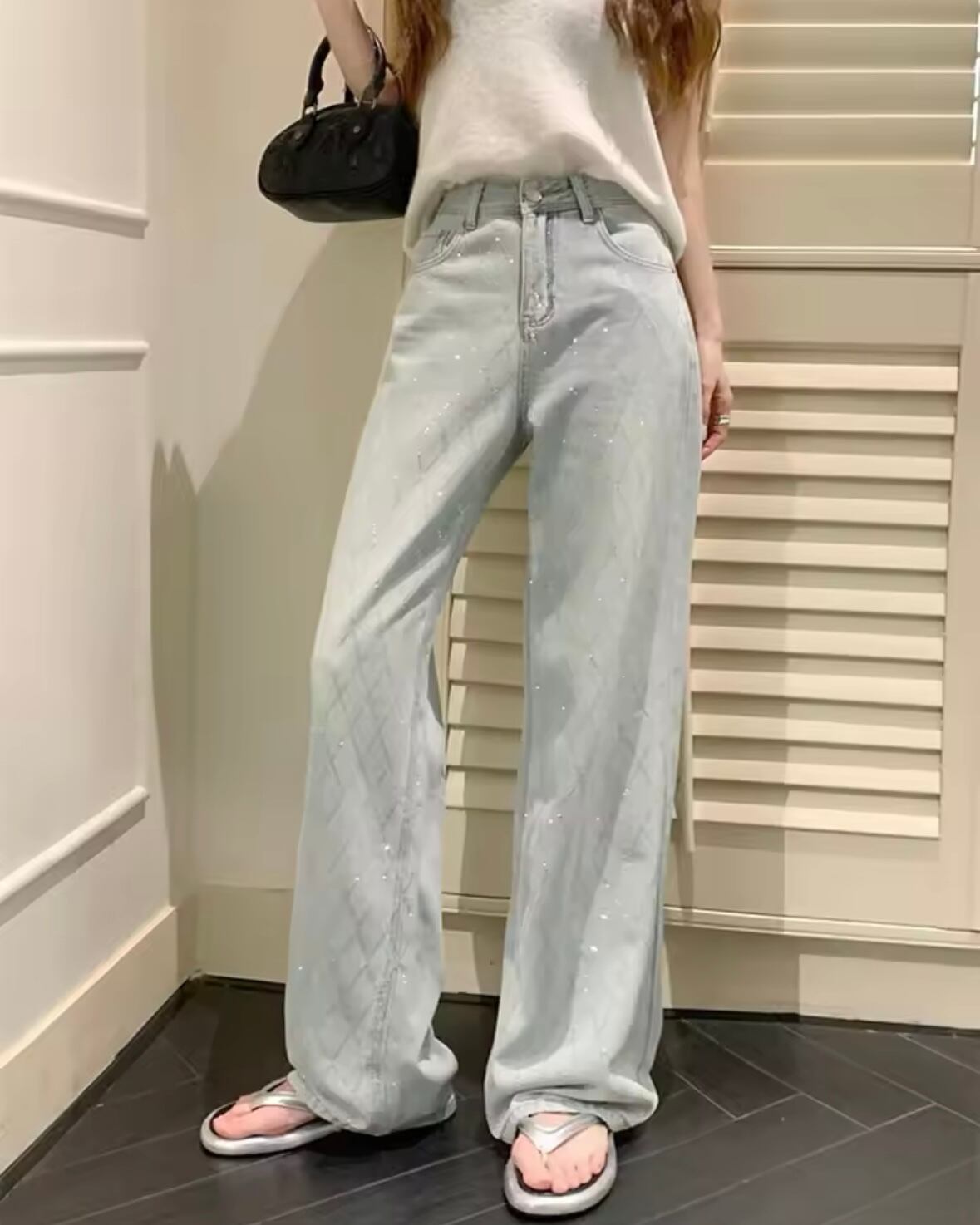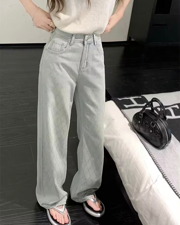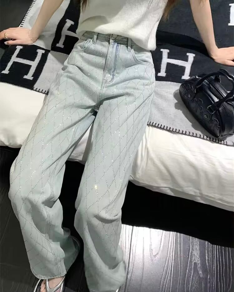 クロスラインストーンデニムパンツ