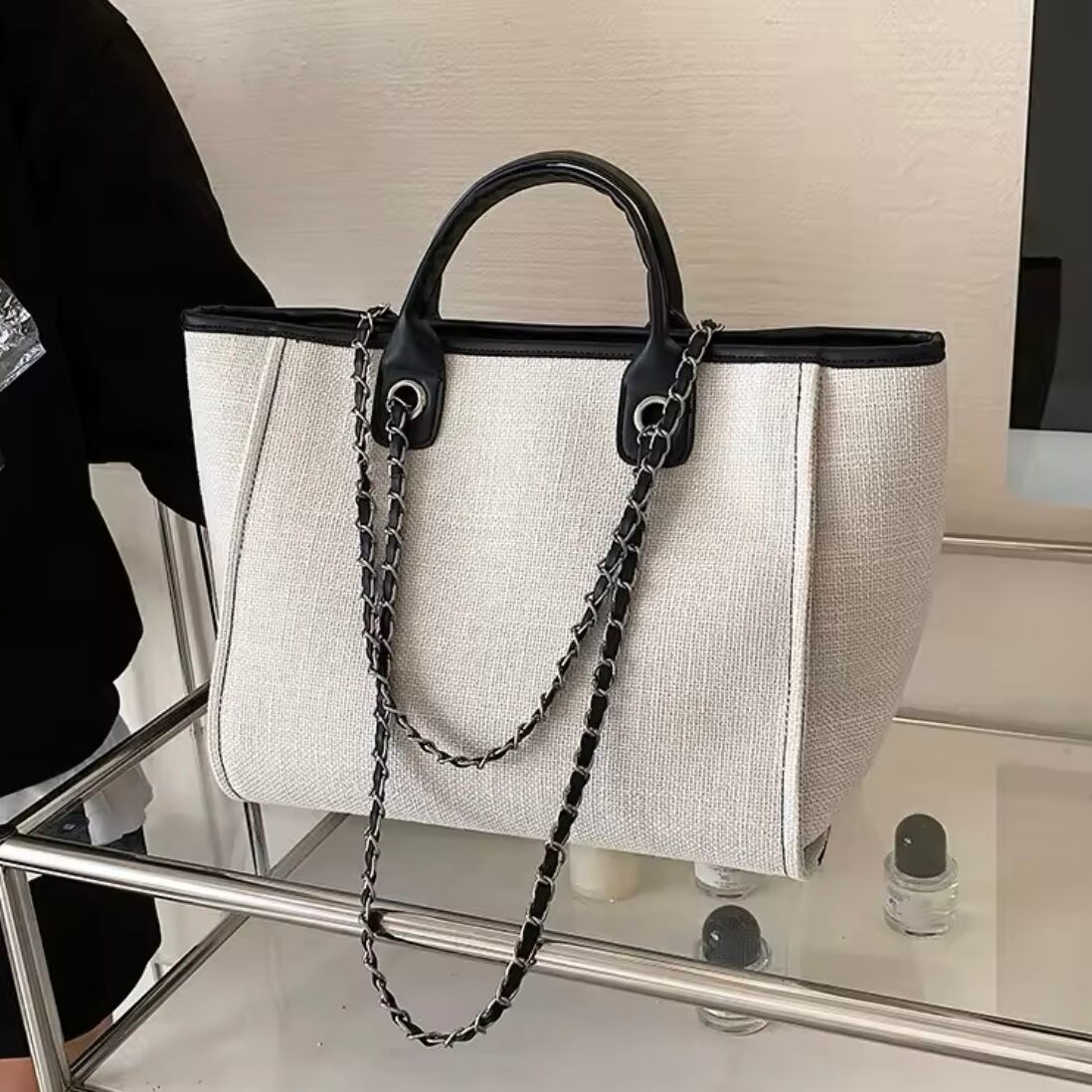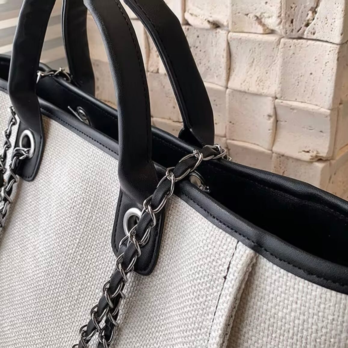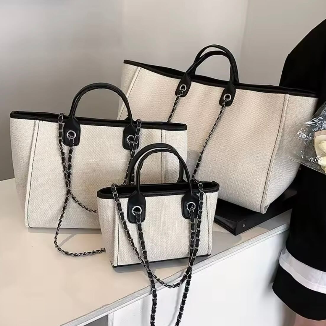 【3サイズ】レザーチェーンキャンバスバッグ 3色展開
