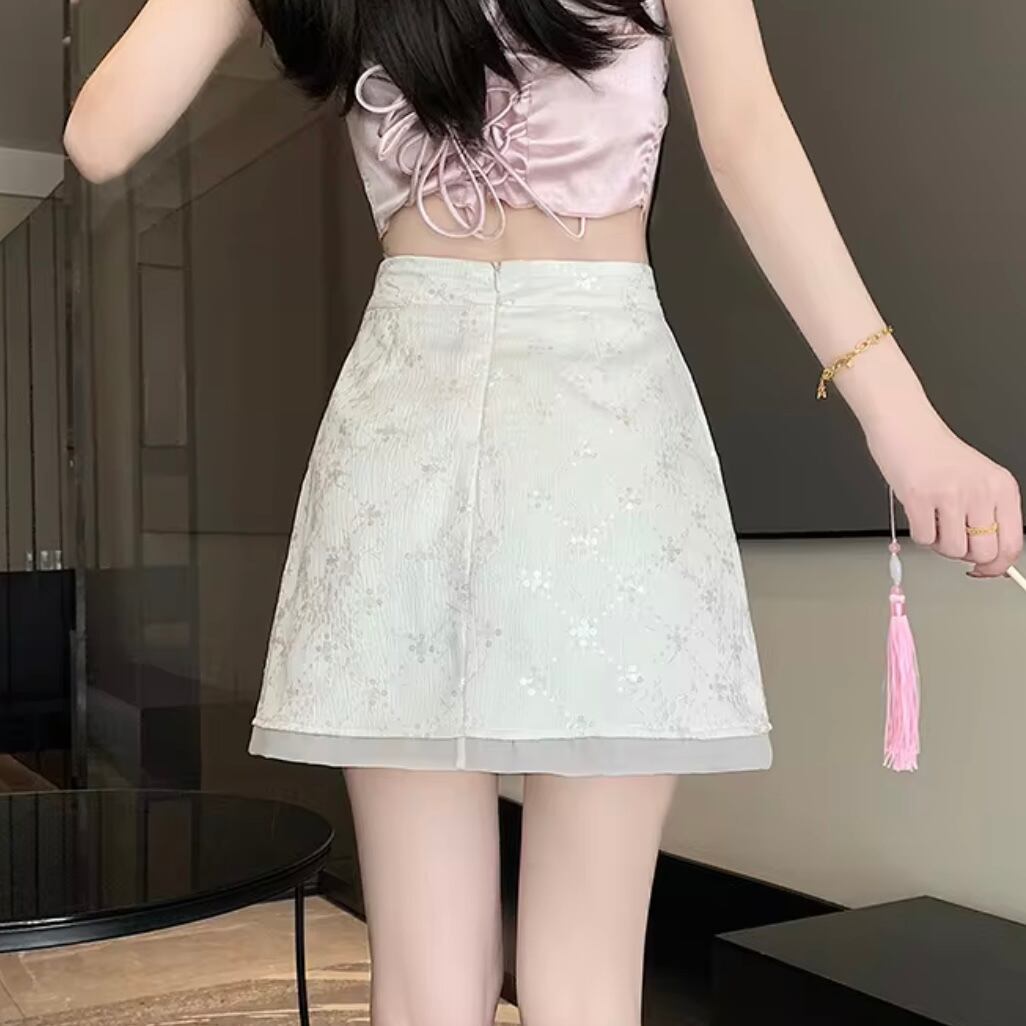 クロススパンコールハイウエストスカート 2色展開