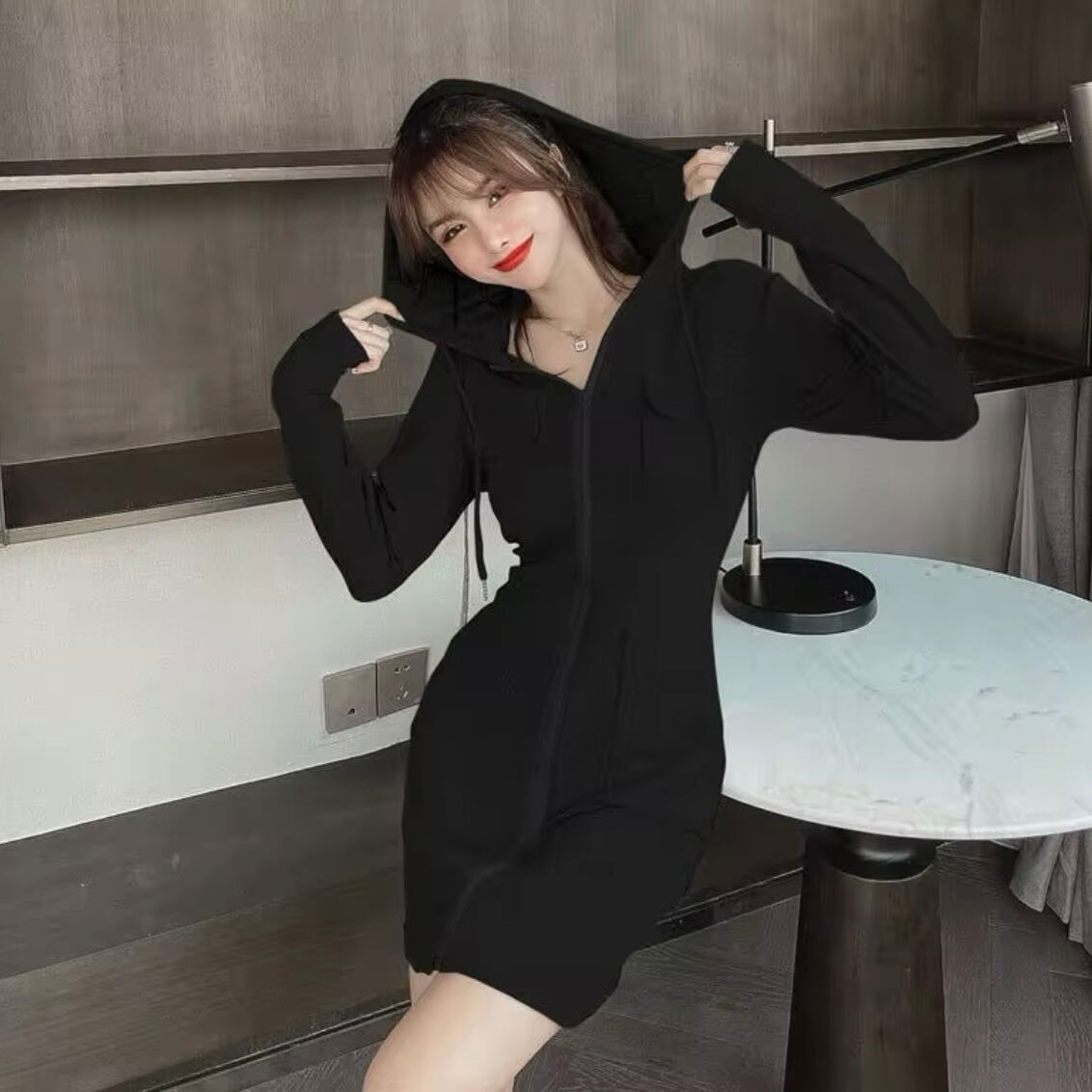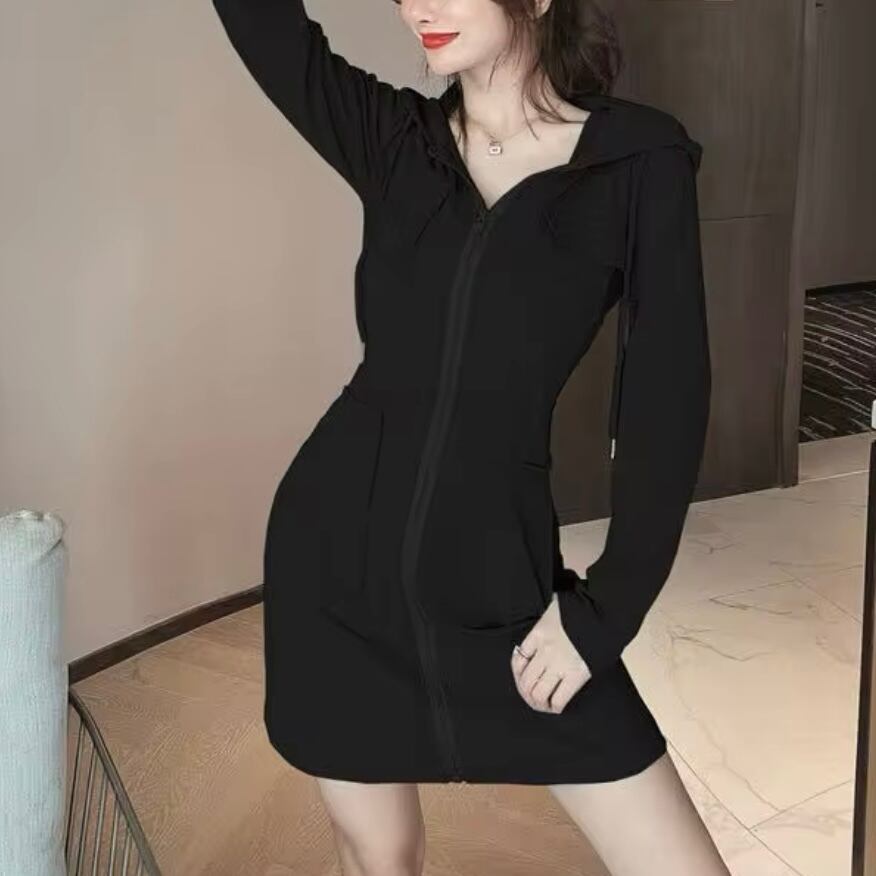 ジッパーフーディミニワンピース 2色展開