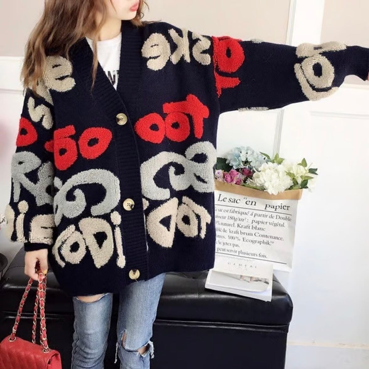 アルファベットルーズニットカーディガン 3色展開