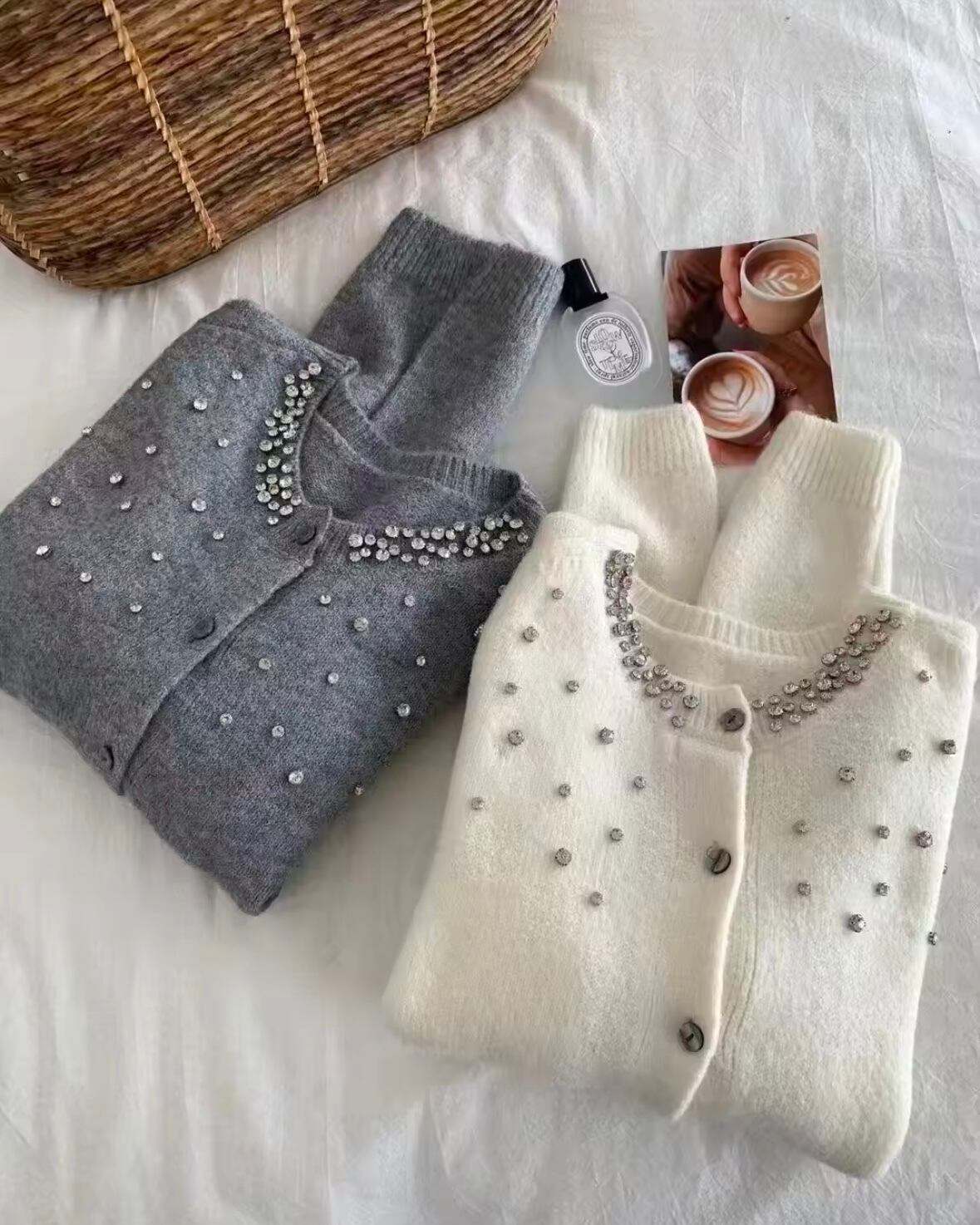 カシミヤタッチビジューカーディガン 2色展開